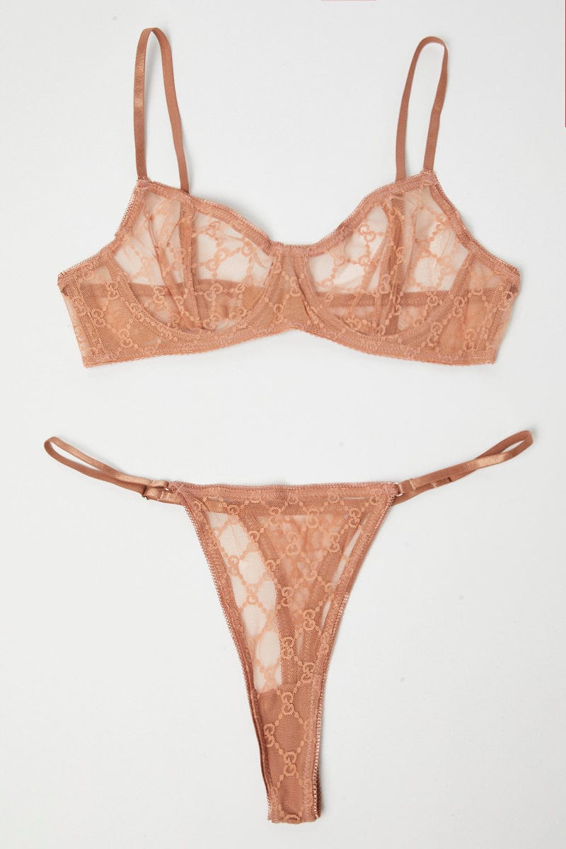 Beige Mesh Lingerie Set