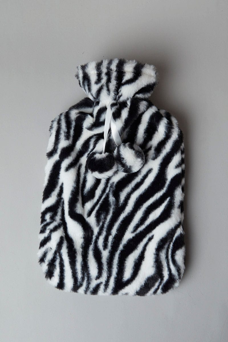Black Animal Print Zebra Print Hot Water Bottle