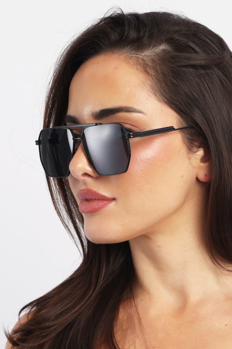 - Aviator-Shaped, Black Coloured Frames, Black Tinted Lens