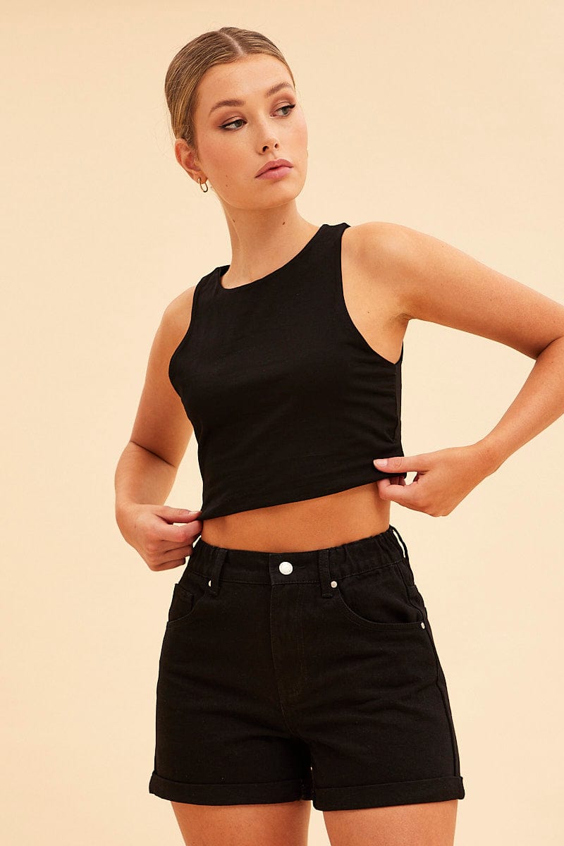 Black Essential Cotton Stretch Crop Tank