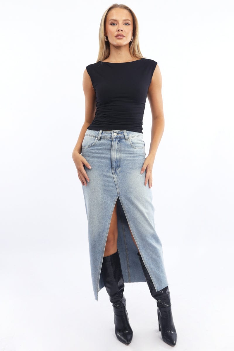 Black Supersoft Top Side Ruched Sleeveless