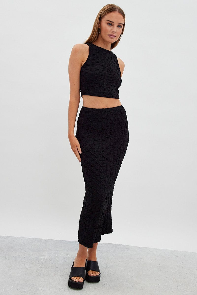 Black Tank Top Sleeveless Crew Neck Textured Jersey