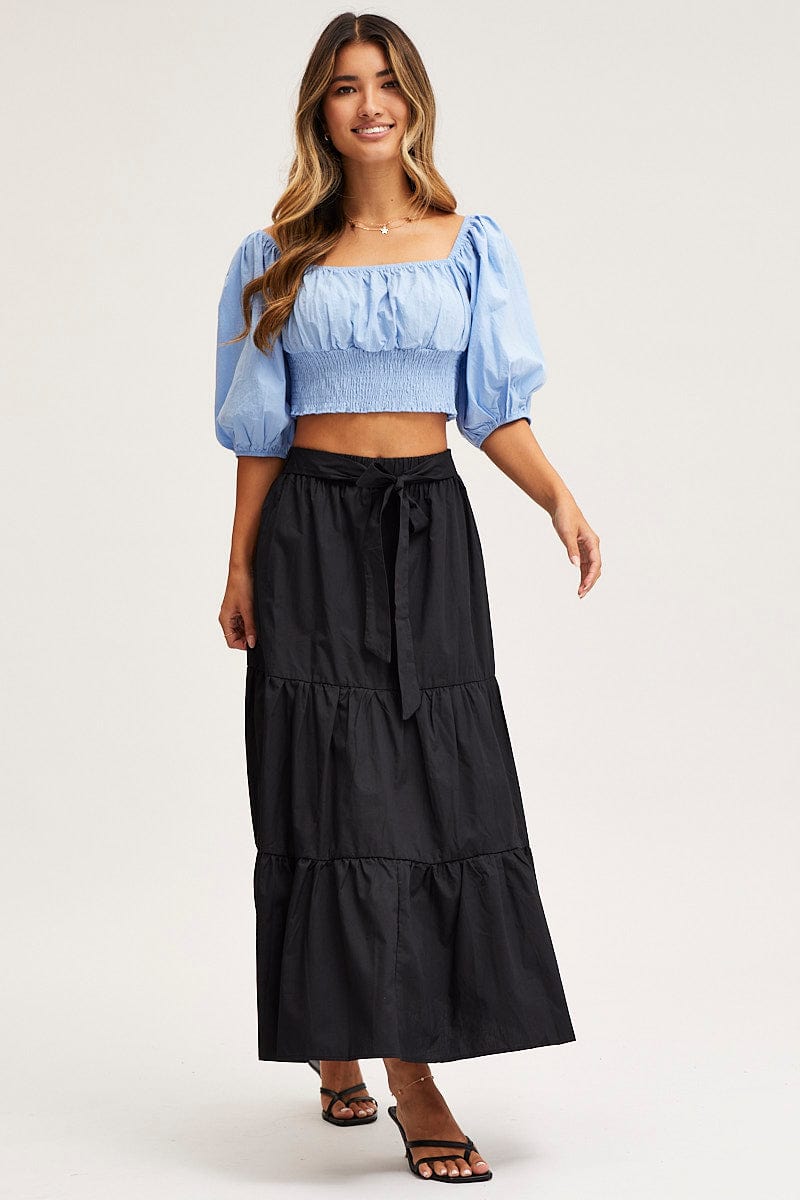 Blue Crop Top Short Sleeve Square Neck