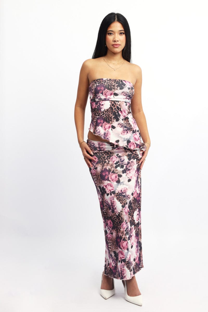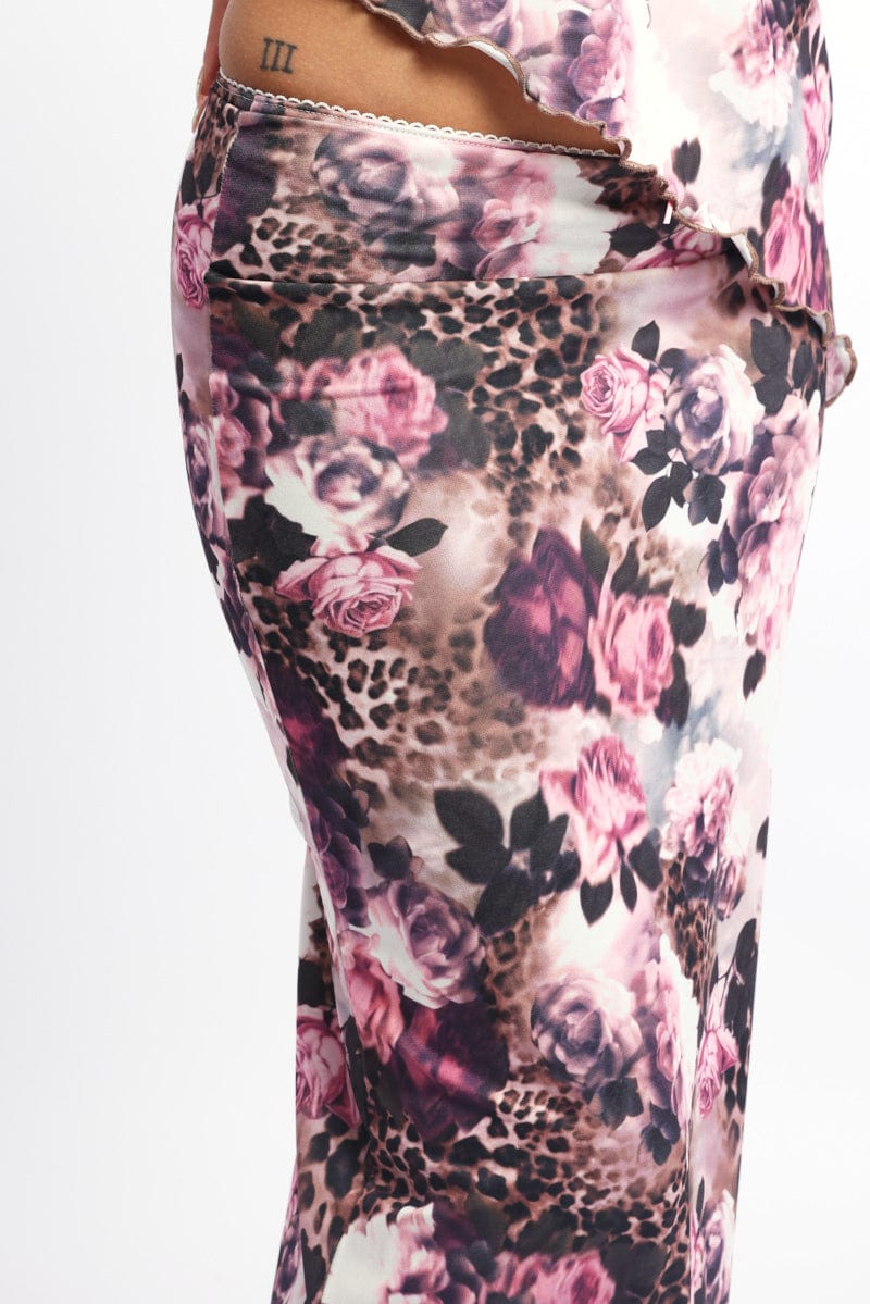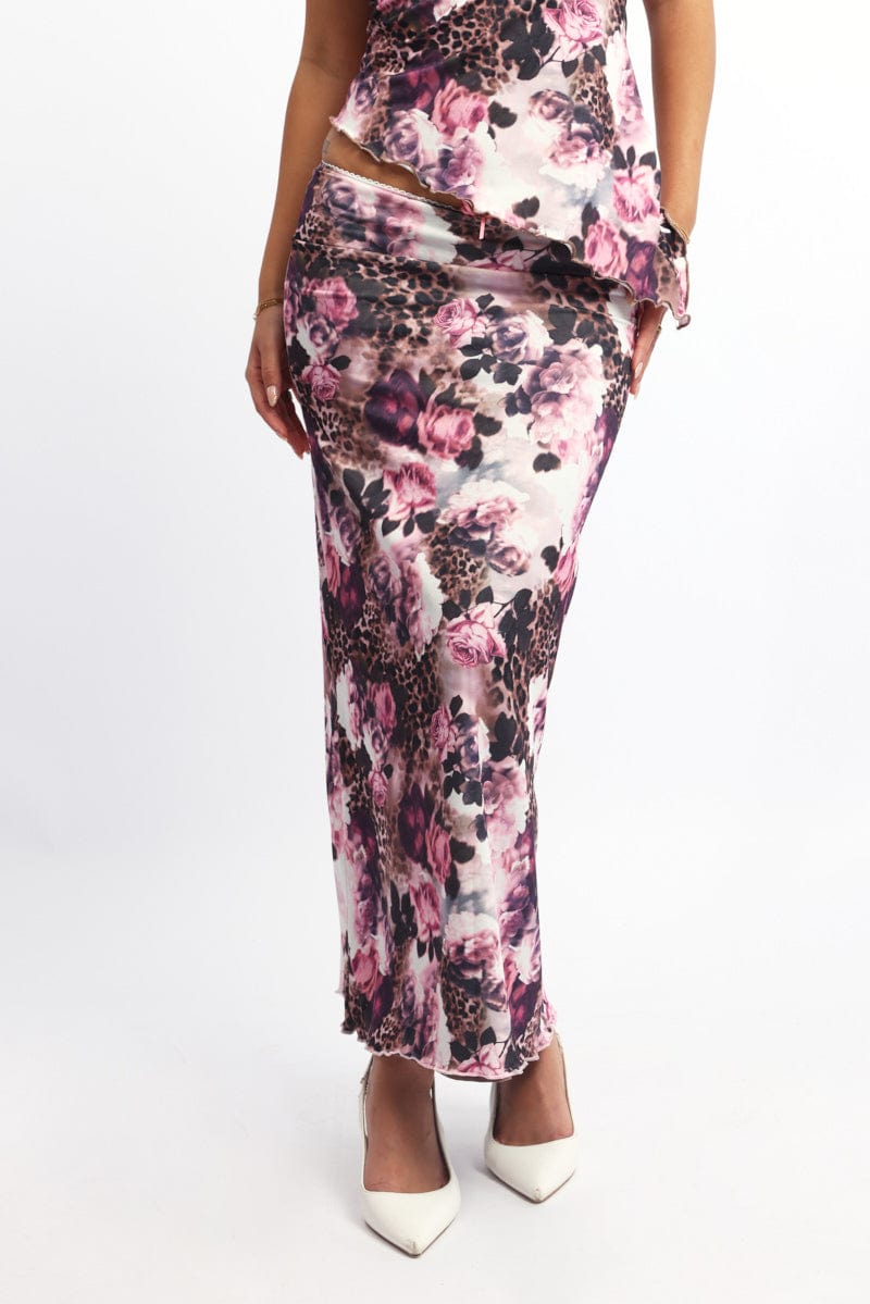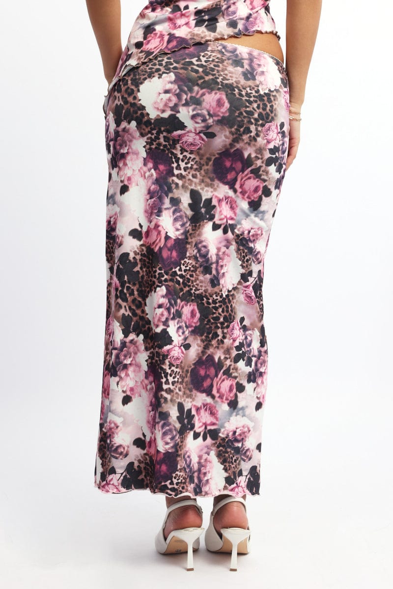 Brown Animal Print Leopard Skirt Elasticated Picot Trim Midaxi