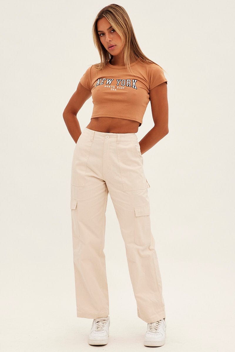 Brown Baby Tee Short Sleeve Crop Round Neck