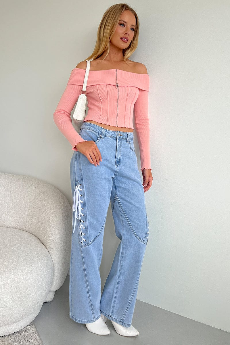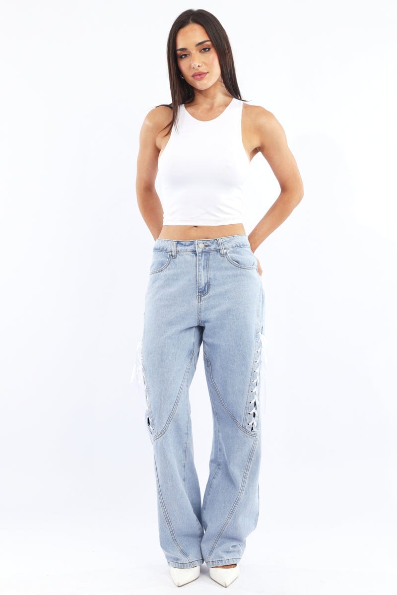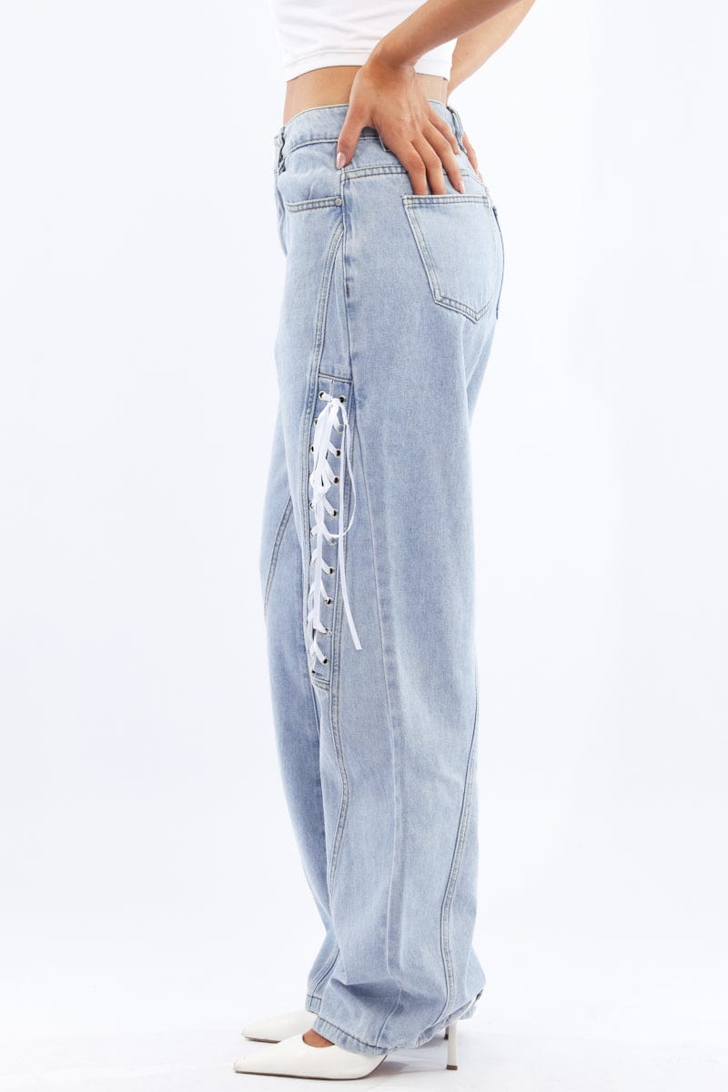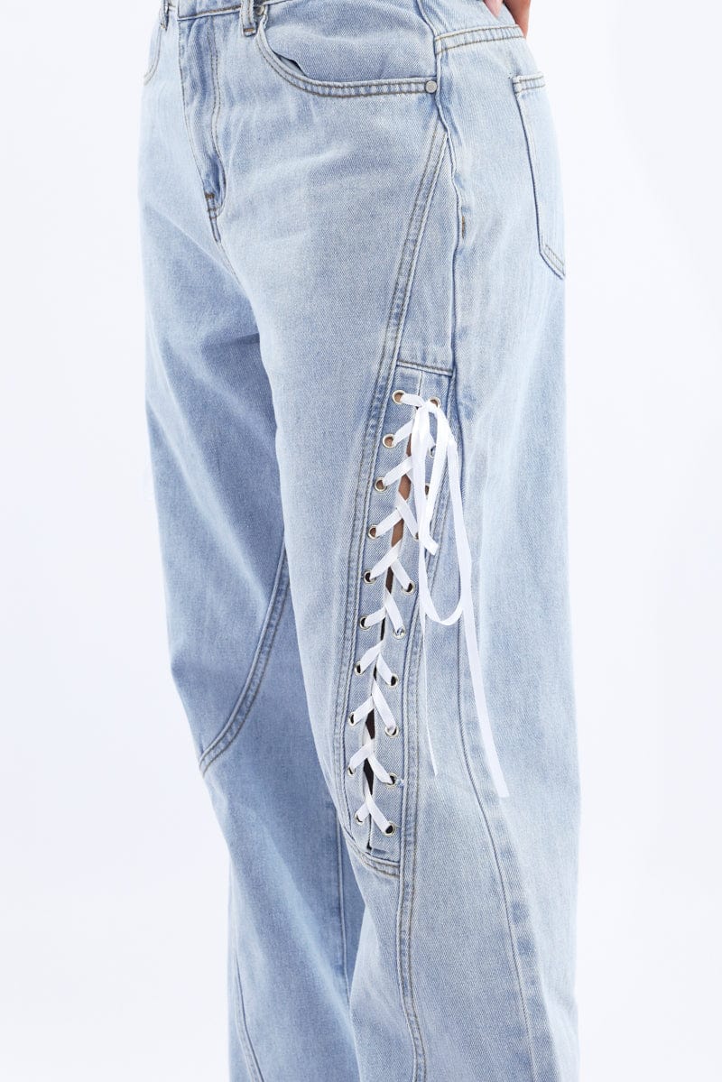Denim Lace Up Wide Leg Jeans
