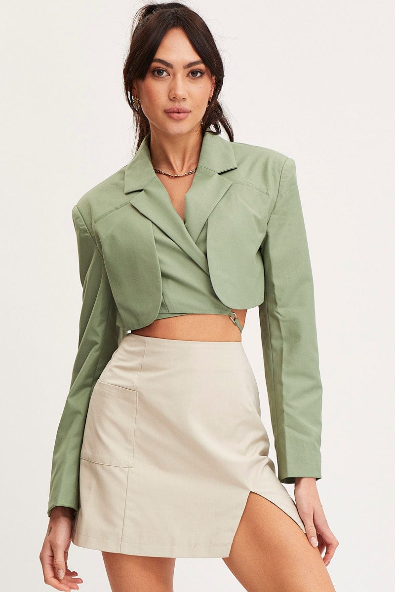 Green Crop Jacket Long Sleeve