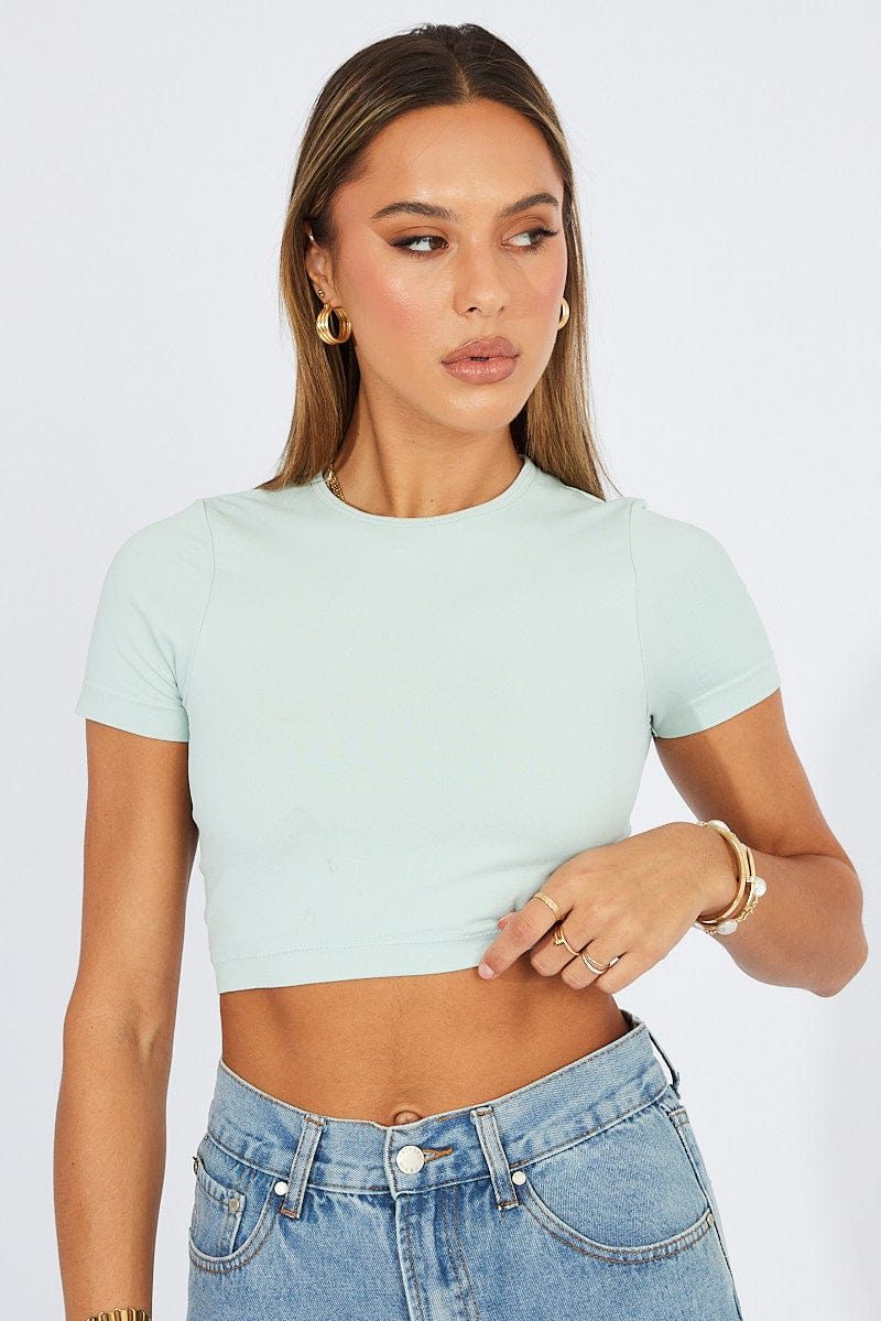 Green T-Shirt Short Sleeve Crew Neck Seamless