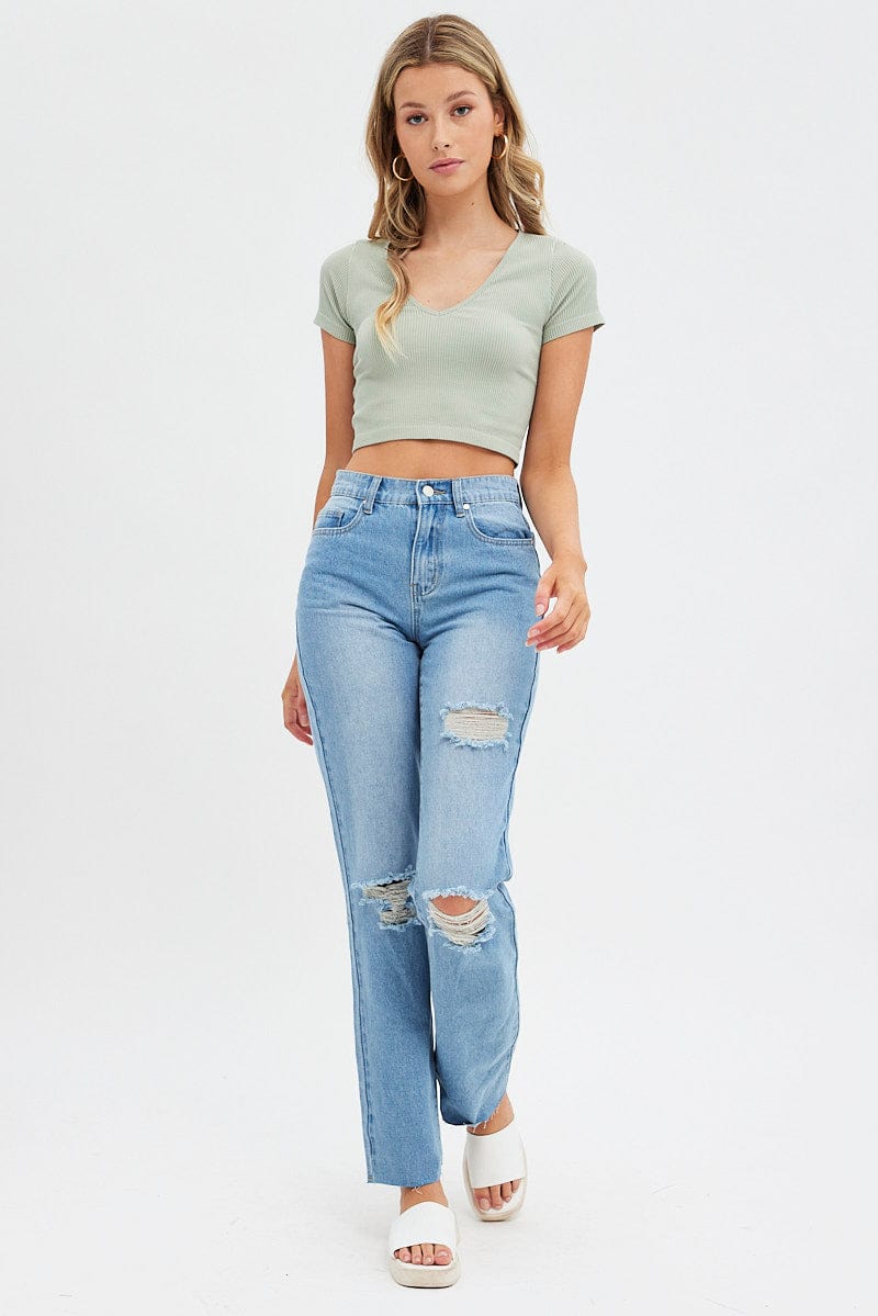 Green T Shirt Short Sleeve V Neck Seamless