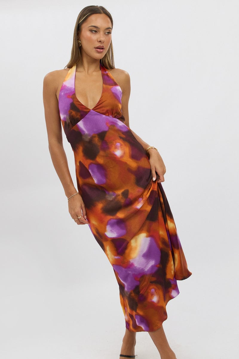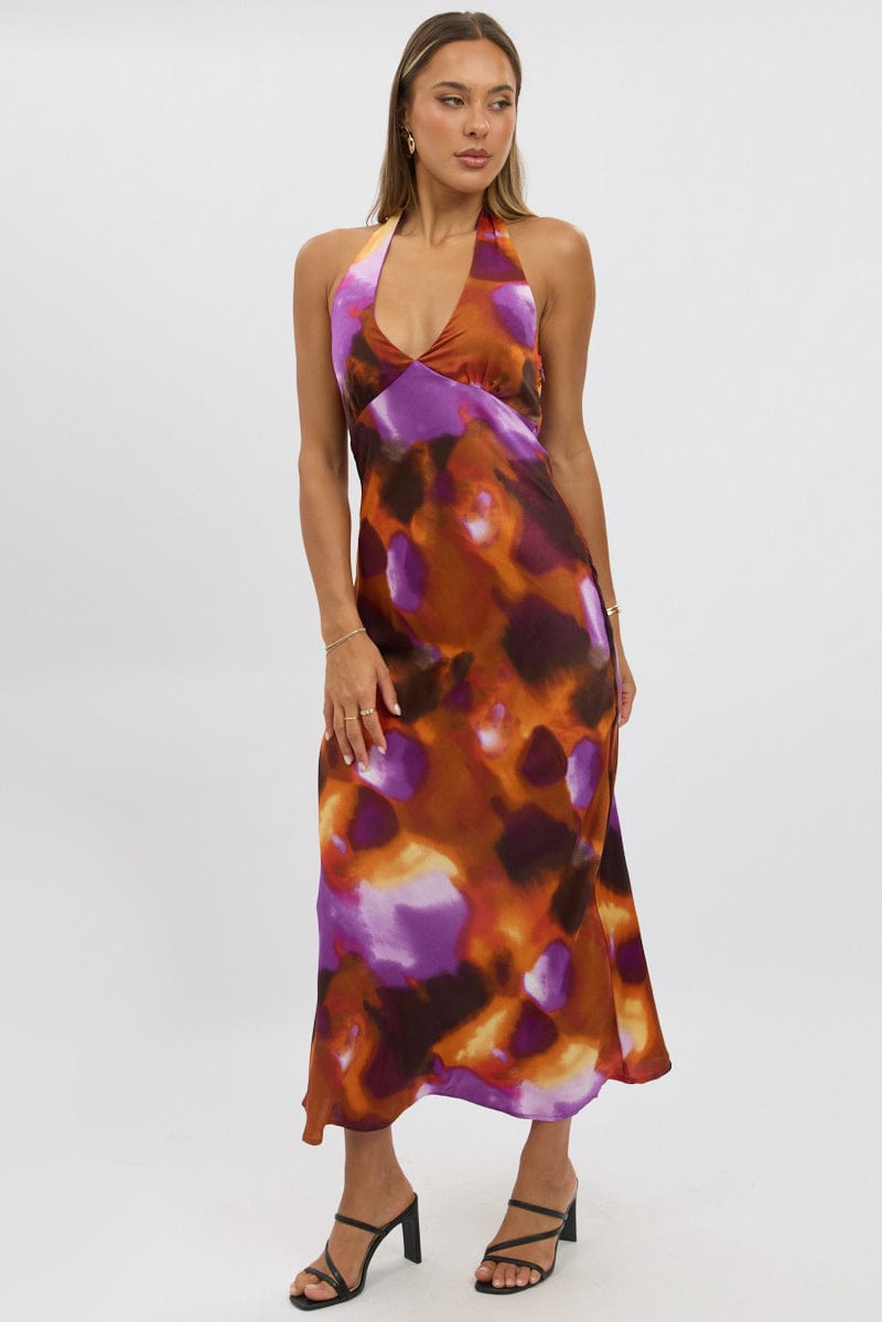- Shirred Back, Side Zipper, Halter Neck Tie, Lined