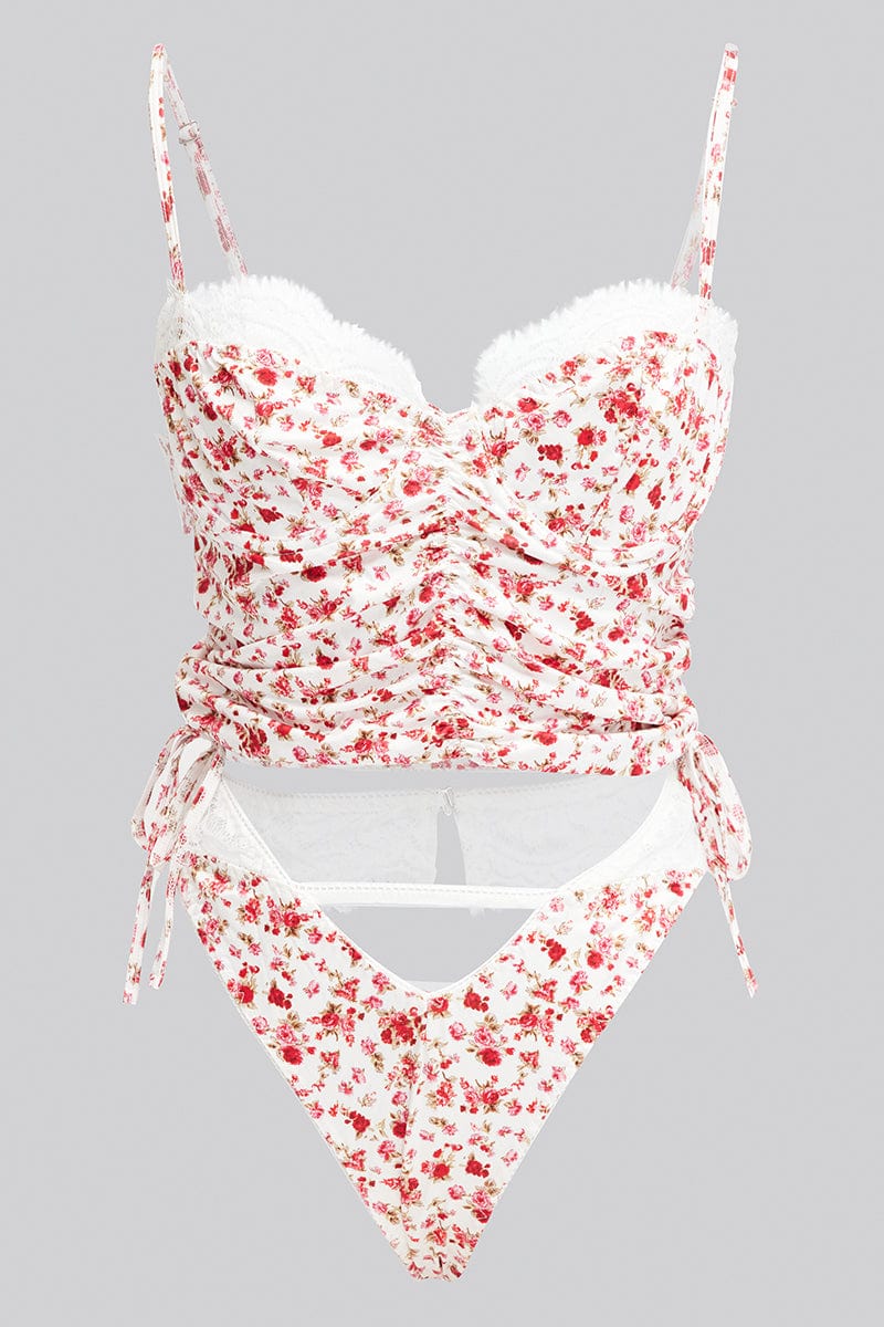 - Lace Detail, Floral Print, Underwire, Adjustable Straps