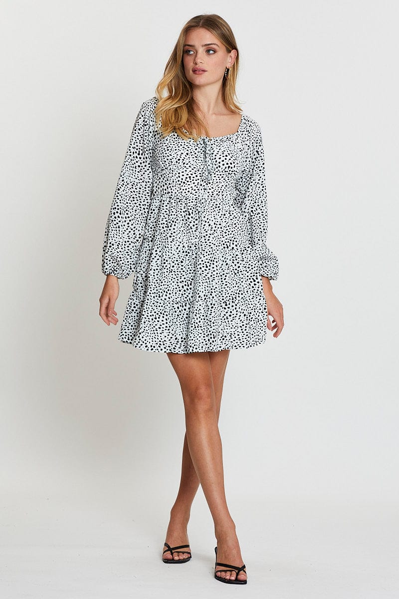 - Geo Print, Tie Detail, Shirred Back, Tiered Design