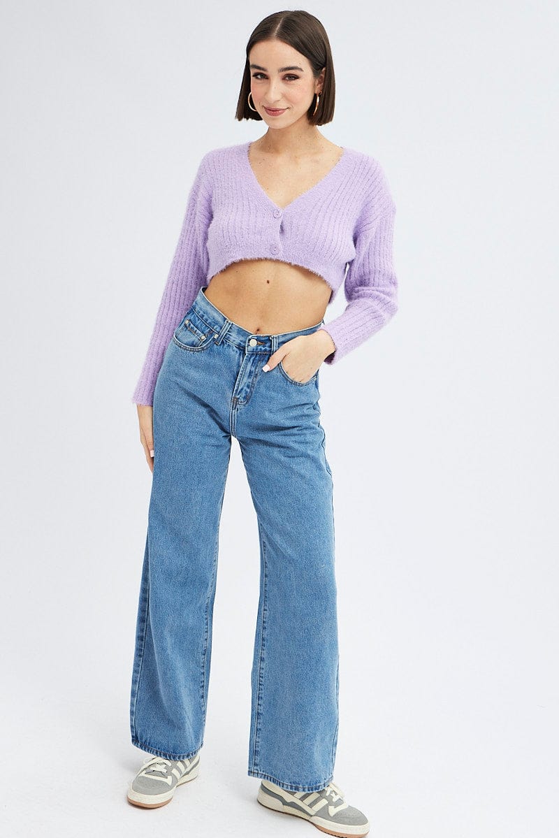 Purple Crop Knit Cardigan V Neck
