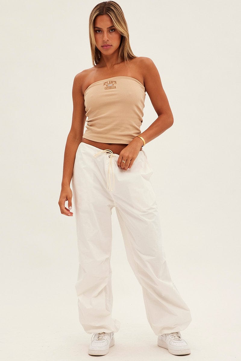 Beige Bandeau Sleeveless Strapless Atlanta Embroidered