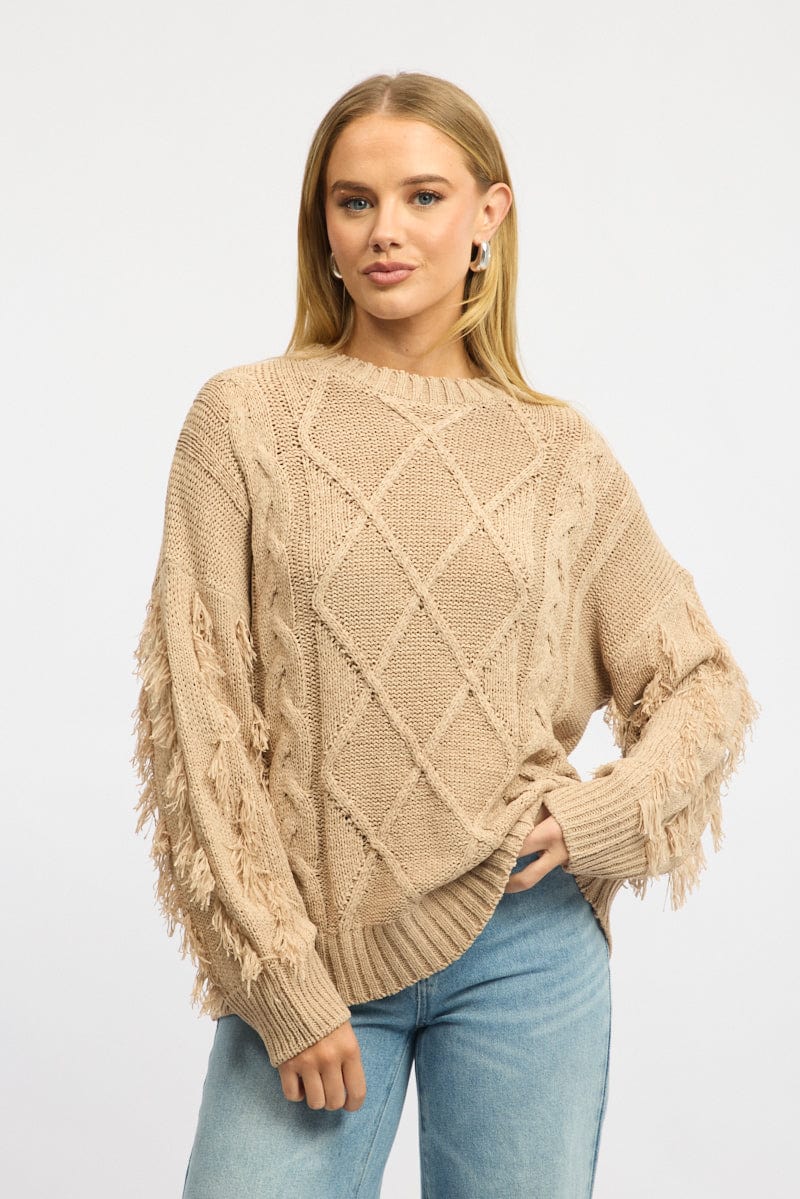- Cable Knit, Tassel Sleeve Details, Ribbed Trim
