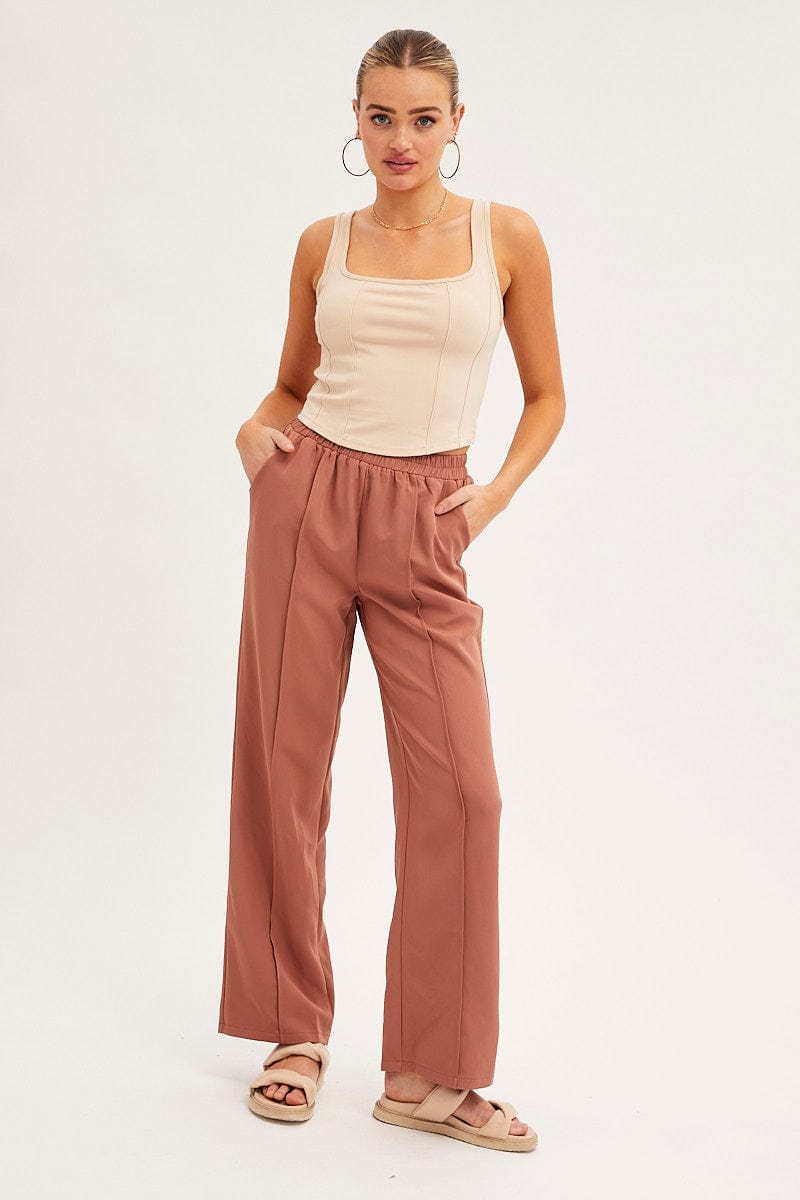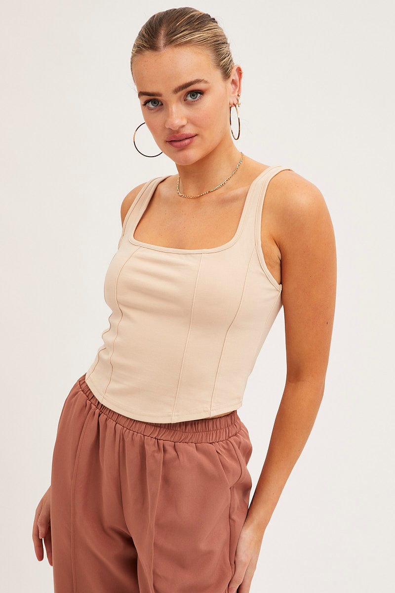 Beige Corset Tank Sleeveless Square Neck Crop Curved Hem
