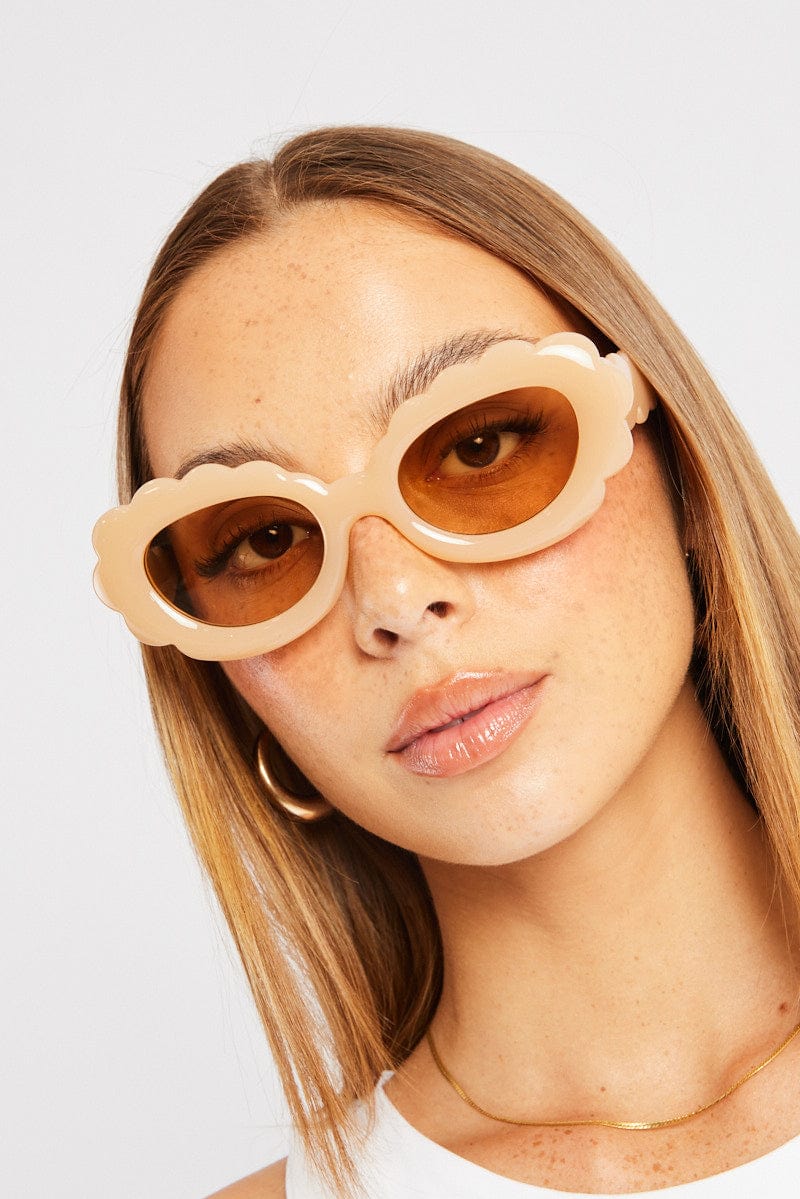 - Beige Scalloped Frame, Brown Tinted Lens
