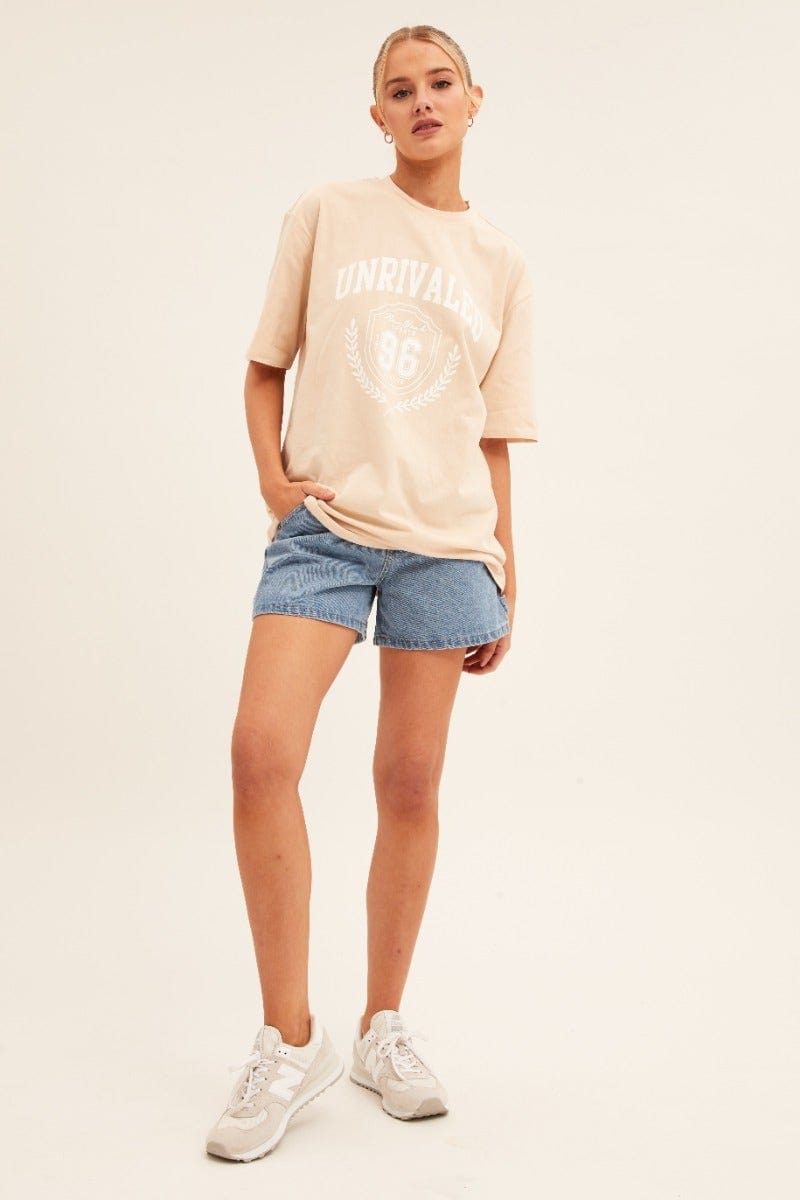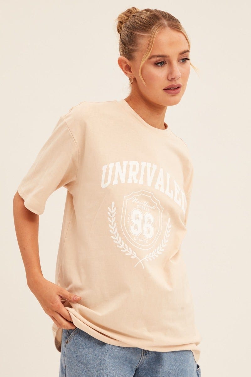 Beige Graphic T-Shirt Short Sleeve Crew Neck