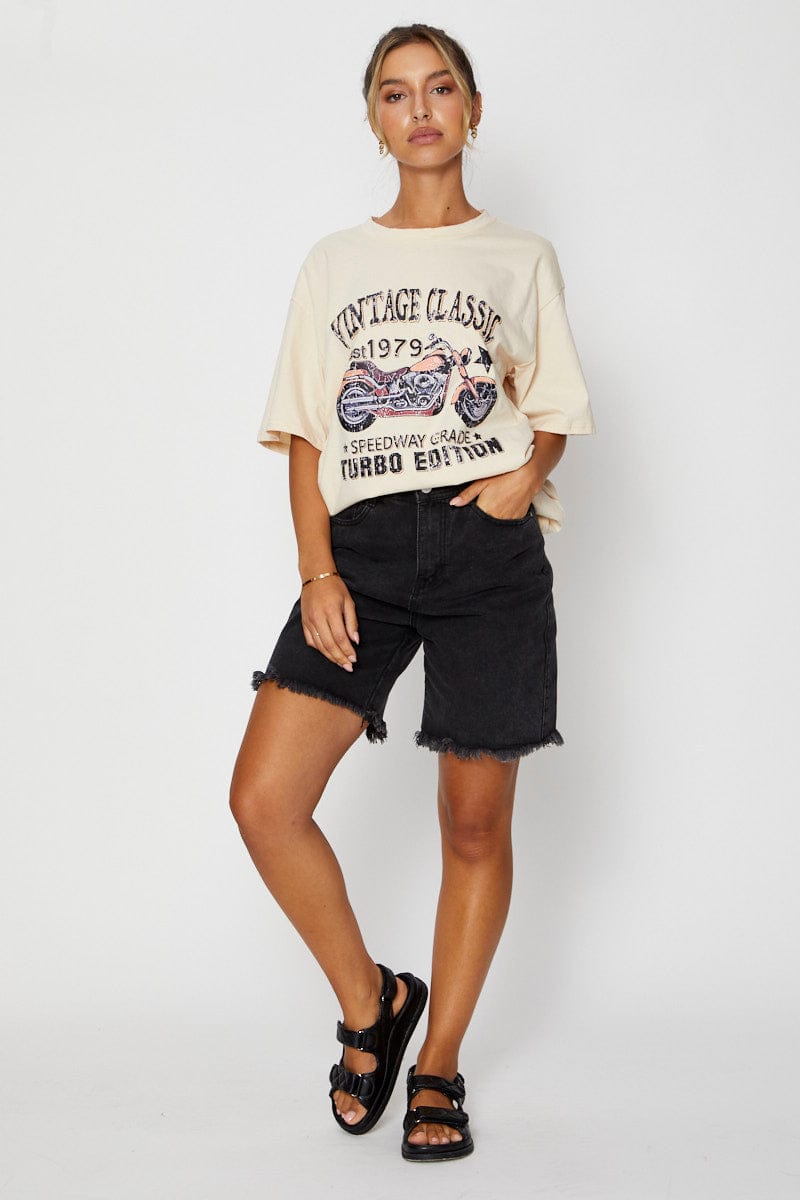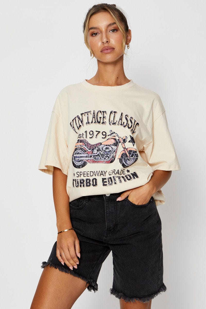 Beige Graphic T-Shirt Short Sleeve Oversized