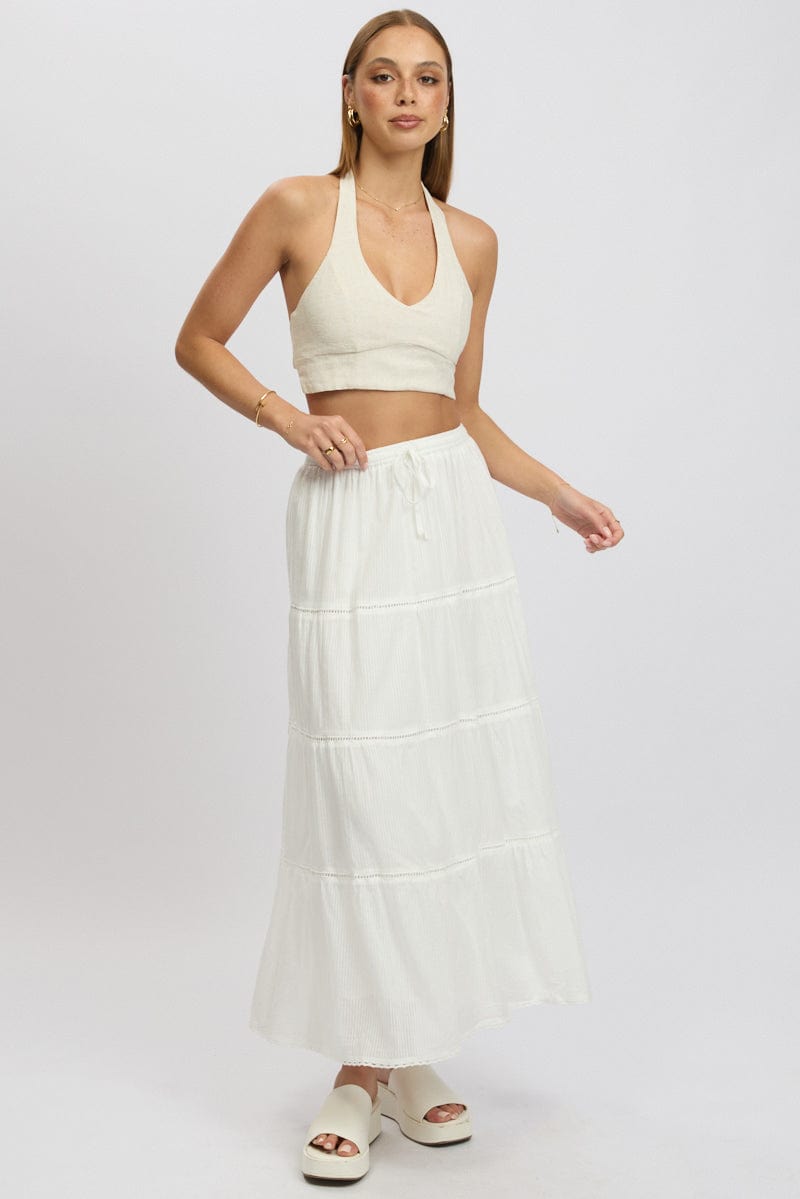 Beige Halter Crop Top Sleeveless Linen Blend