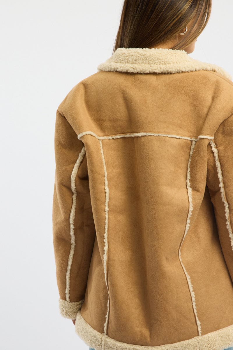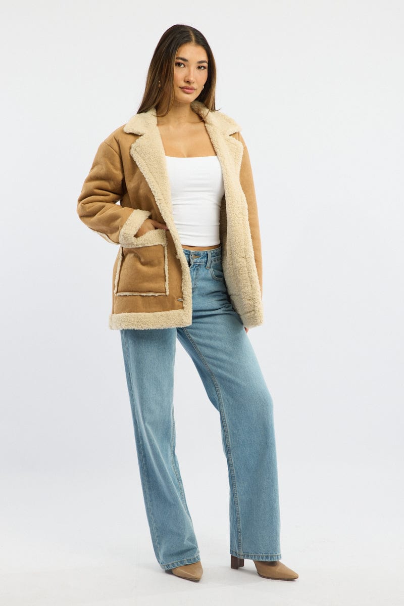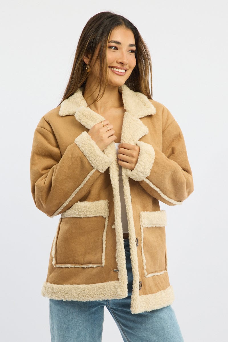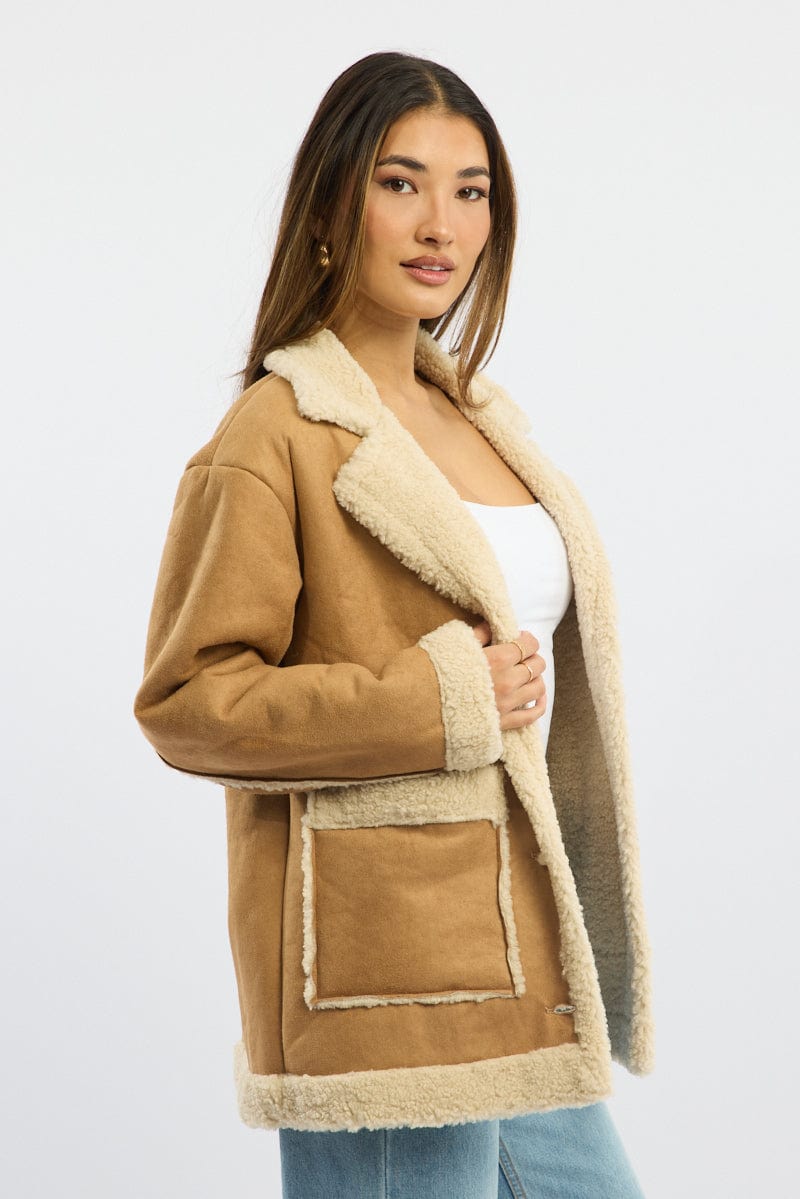 - Faux Fur Lining & Cuffs, Front Pockets, Double Button-Up Closure