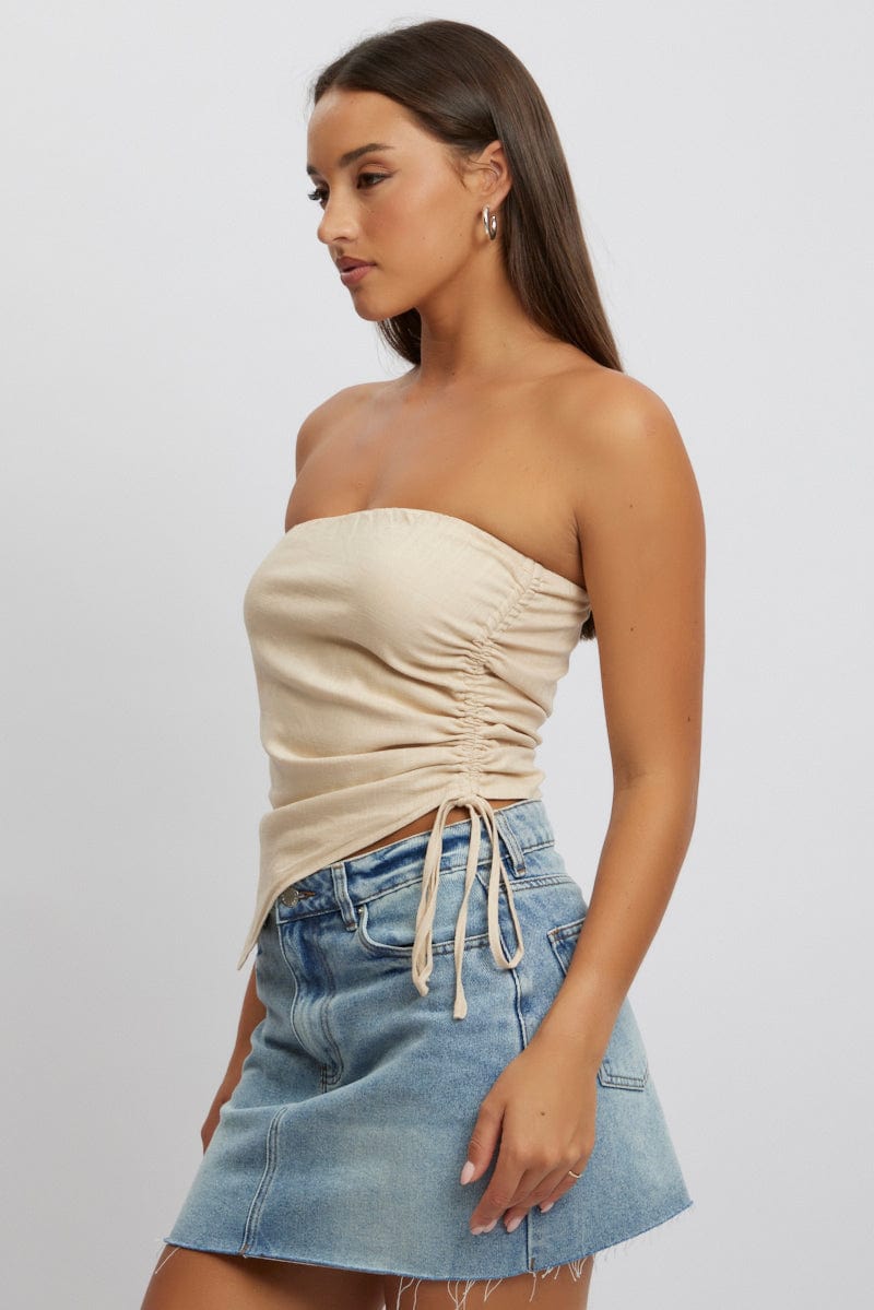 - Ruched Side, Asymmetric Hem, Side Zipper, Lining