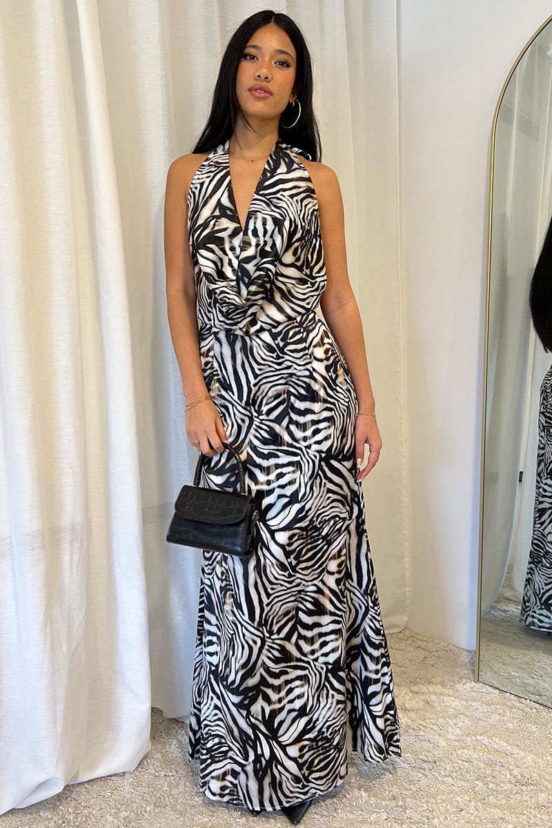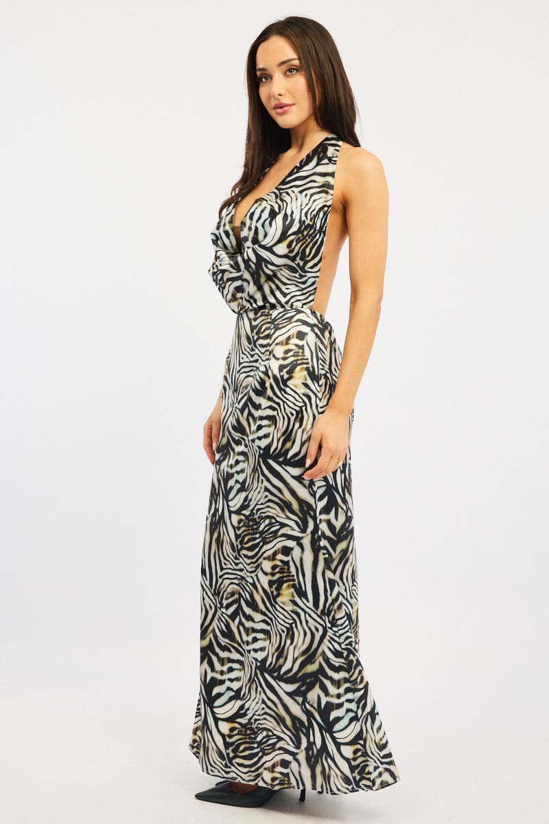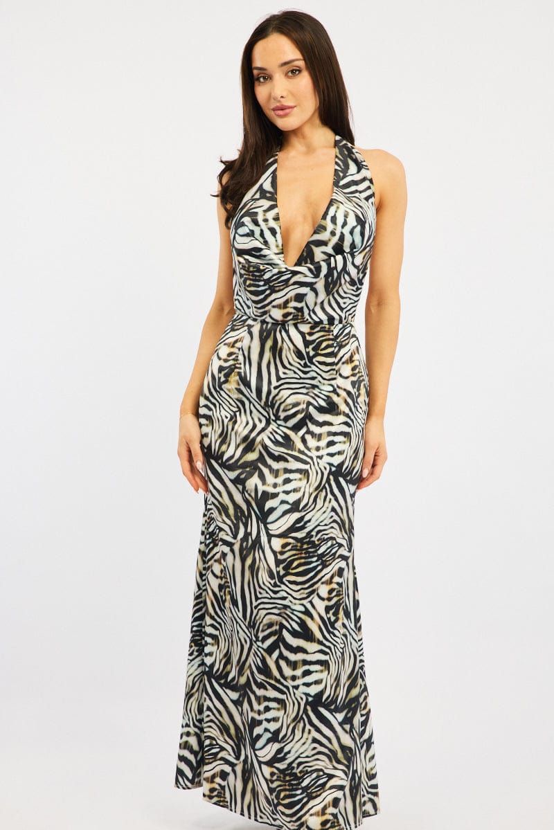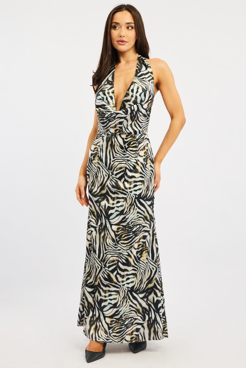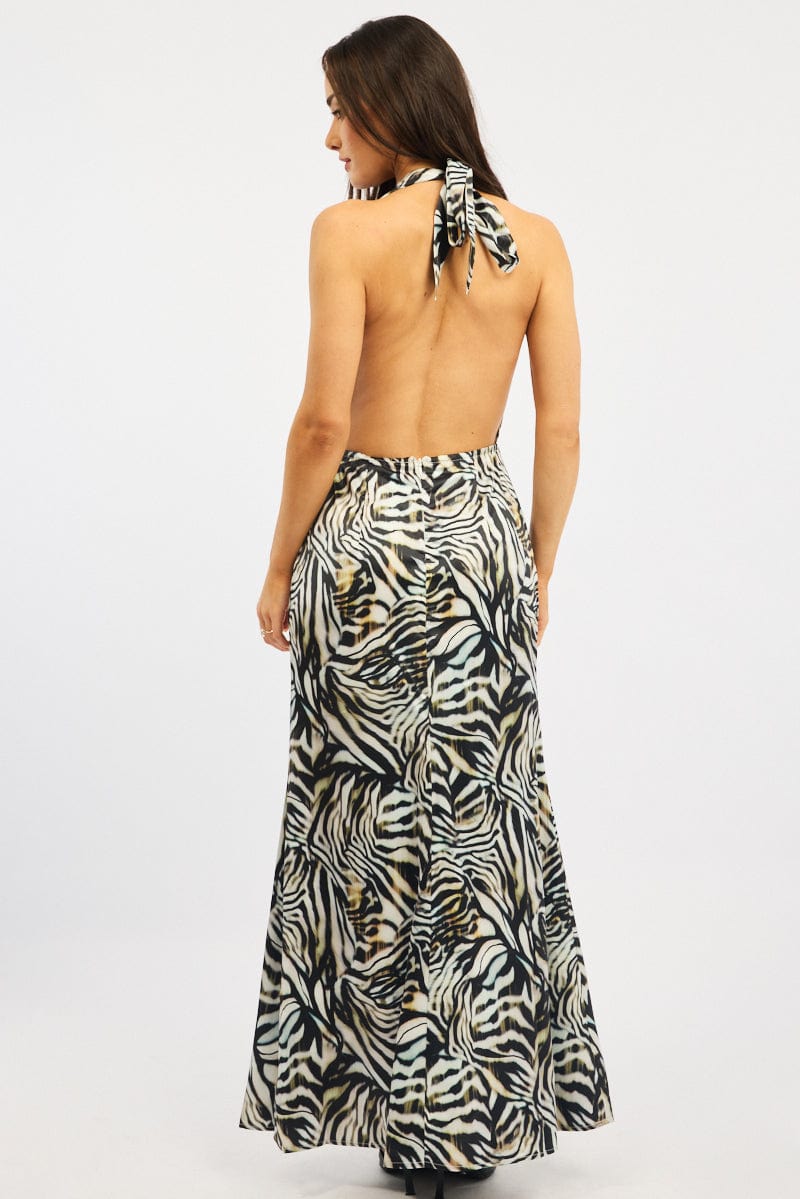 - Backless, Halter Neck Tie, Lining, Back Zipper