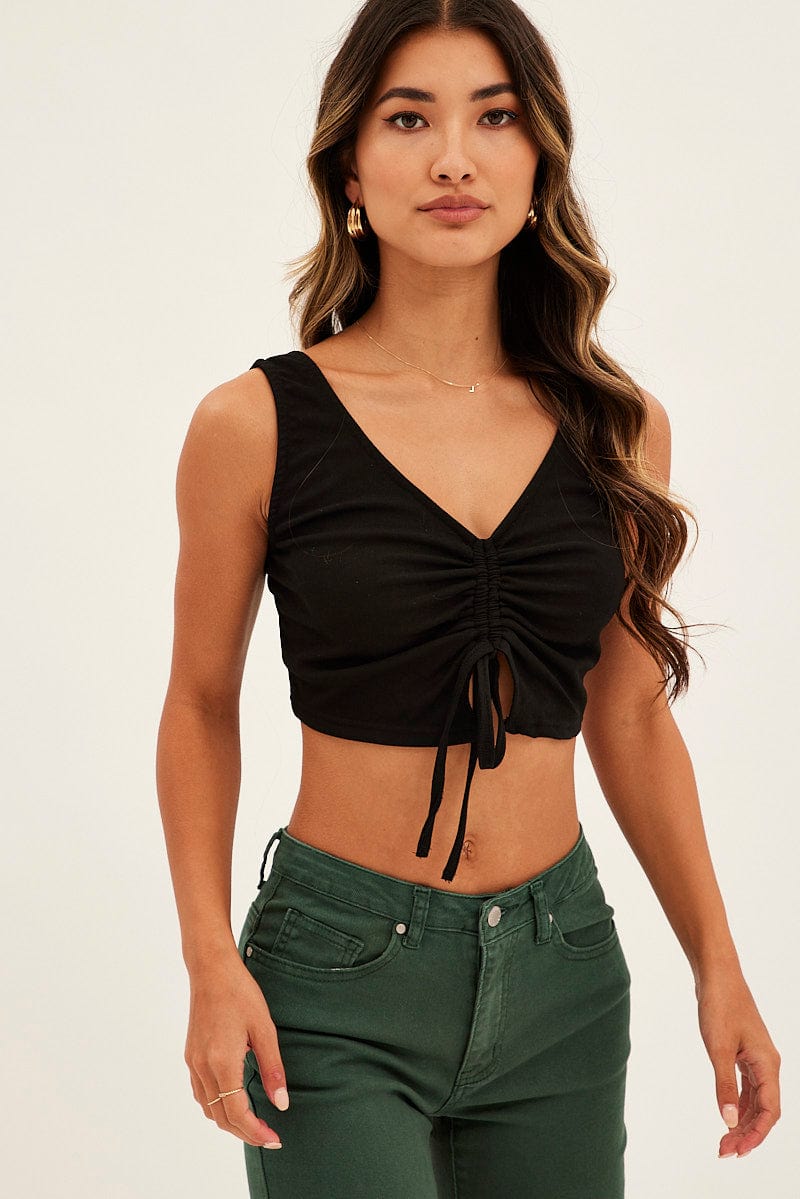 Black Butterfly Tank Drawstring Front Crop