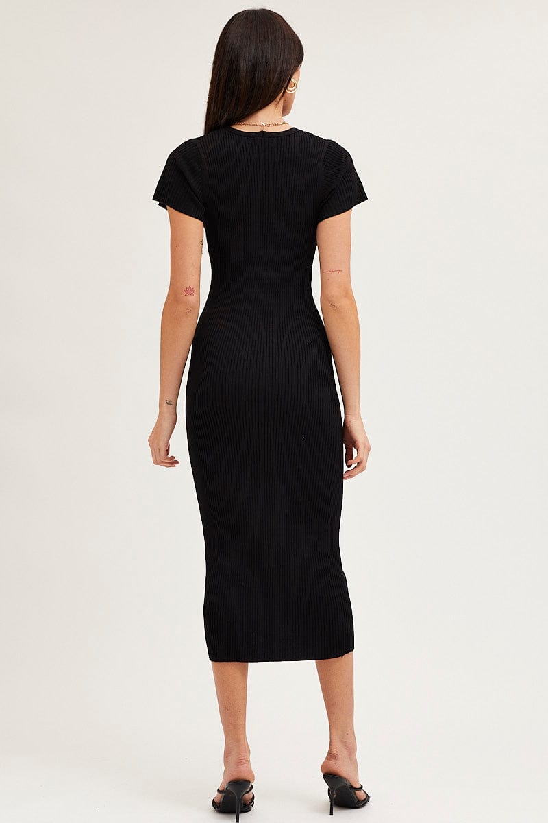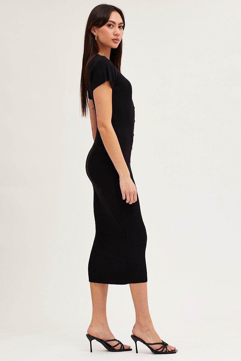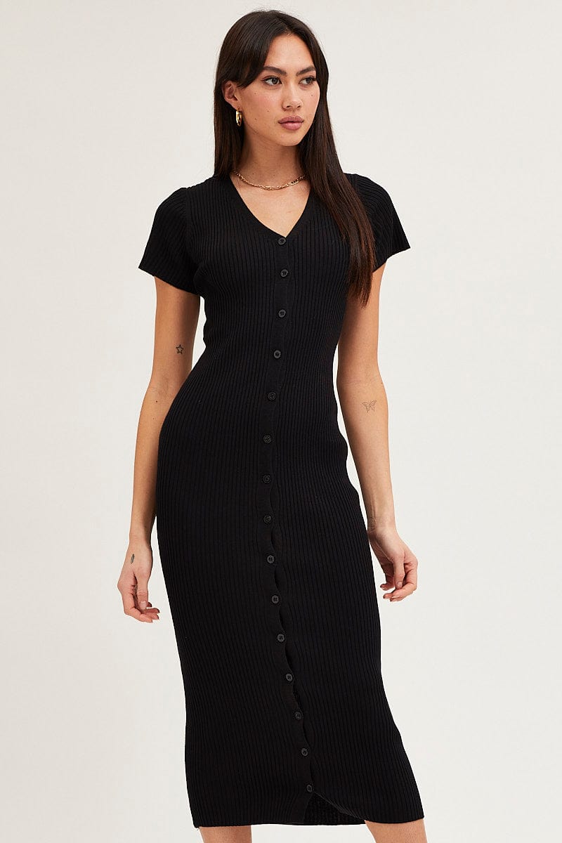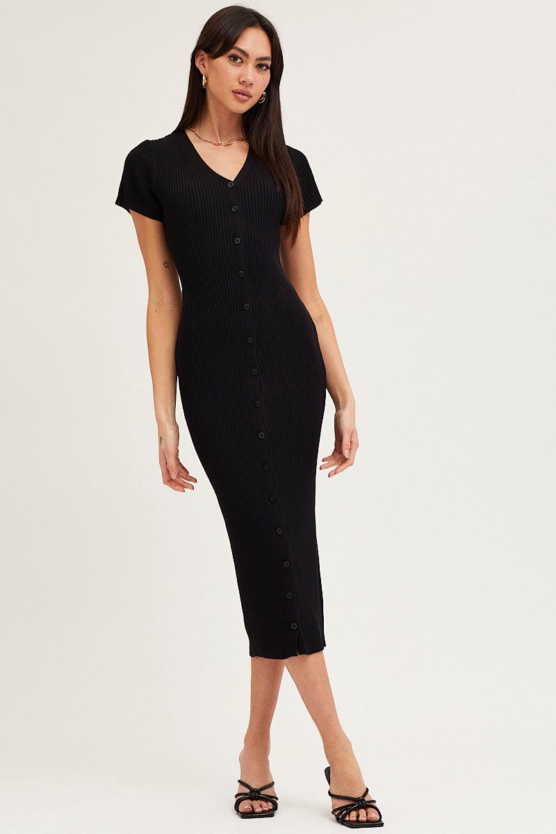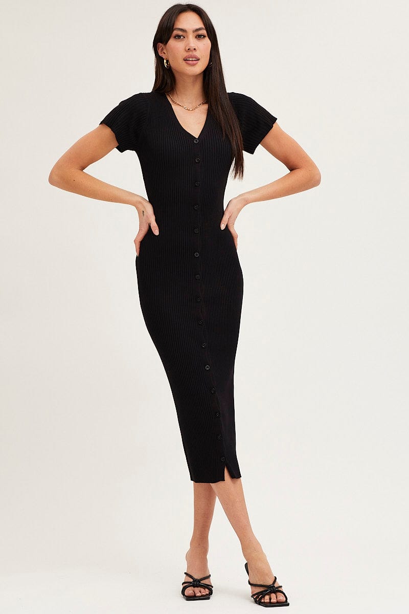 Black Button Front Bodycon Knit Dress