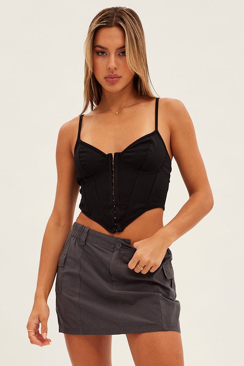 Black Corset Singlet Sleeveless Sweetheart Neck