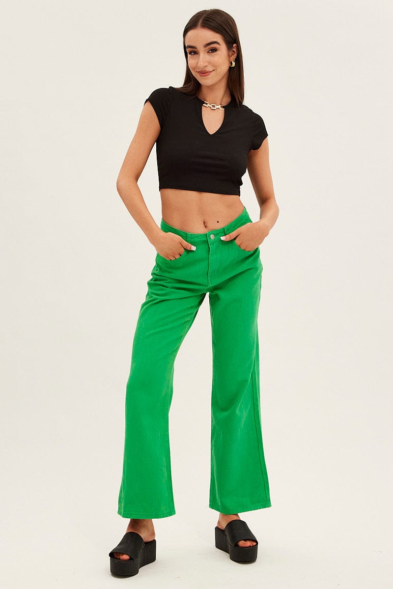 Black Crop Top Short Sleeve Notched Neck Chain Detail