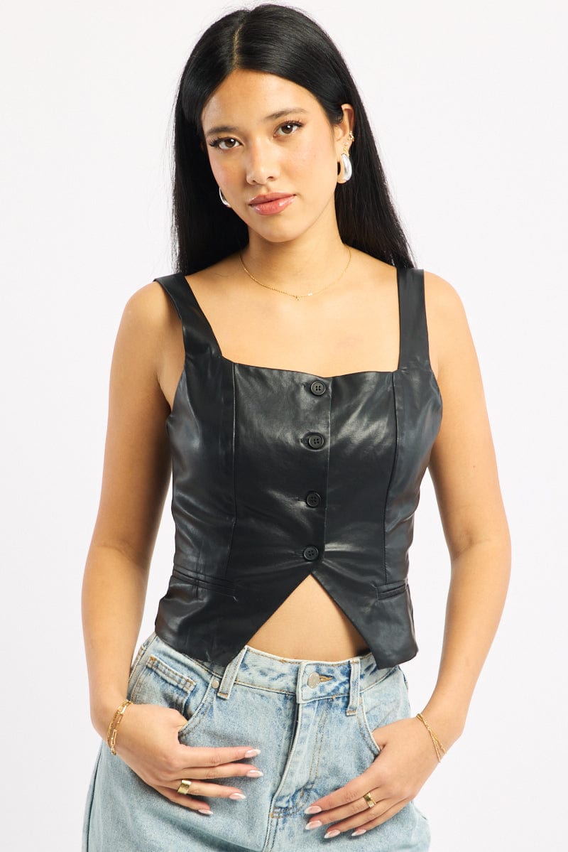 Black Faux Leather Vest