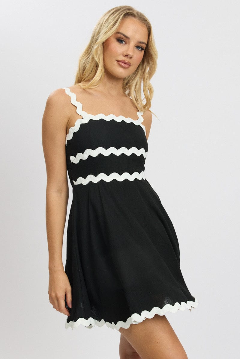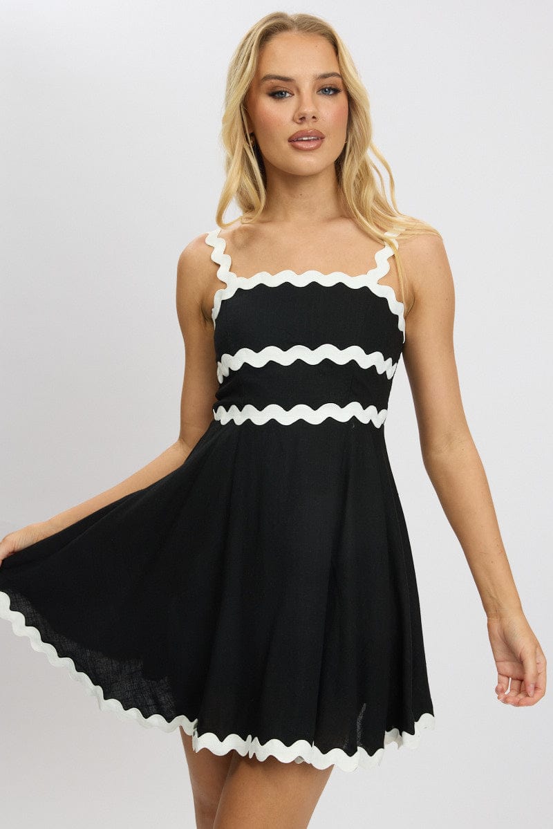 - Ric Rac Trim and Hem, Shirred Back, Lining, Back Zipper