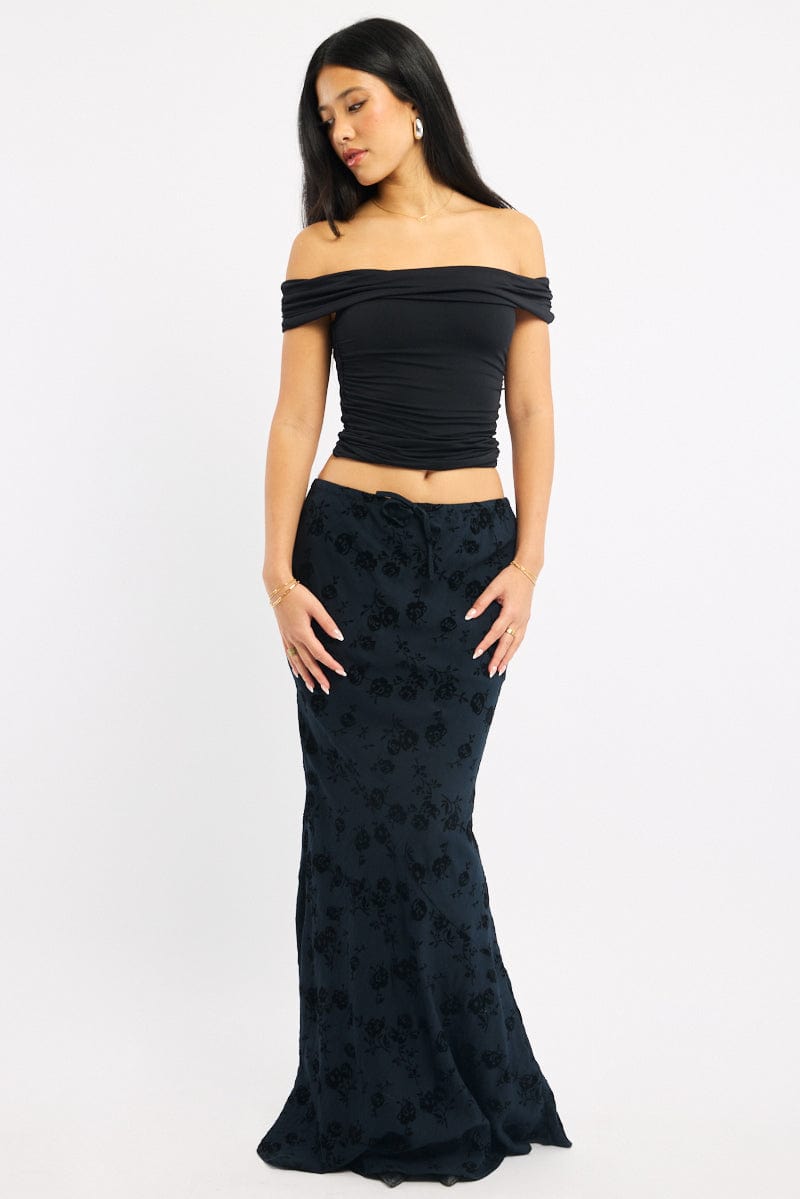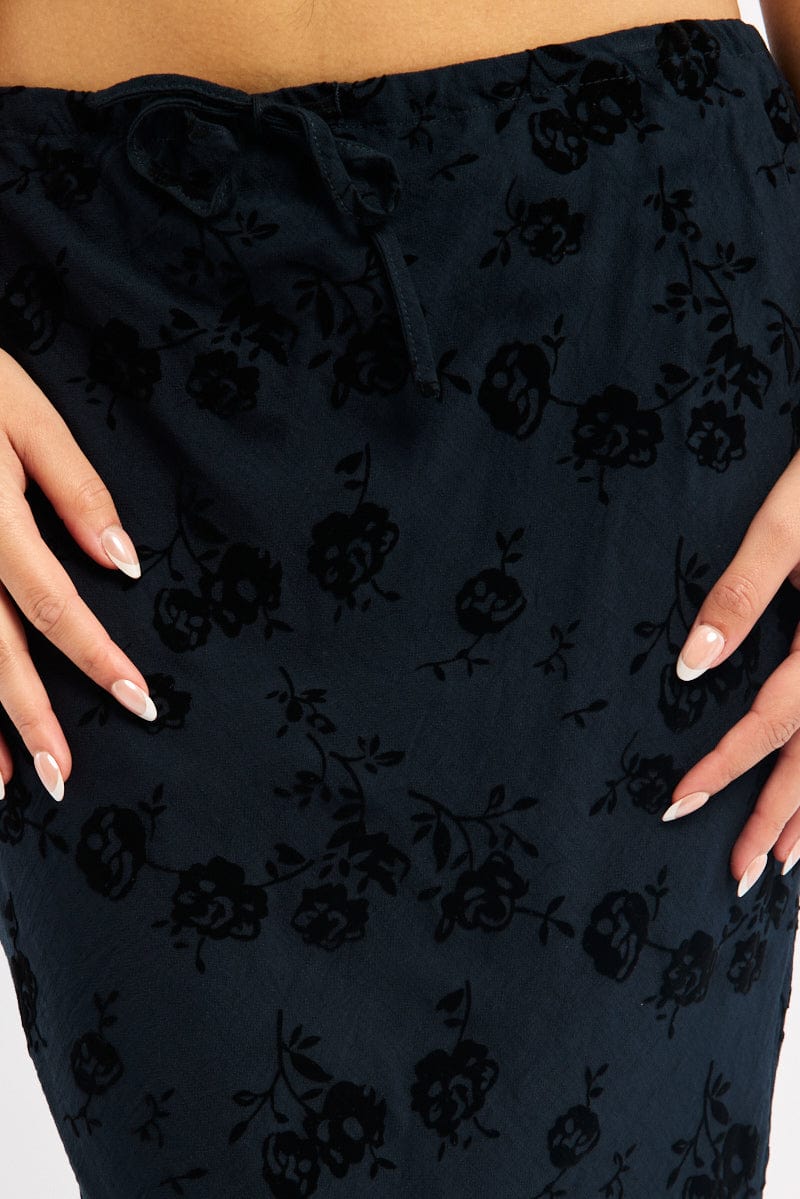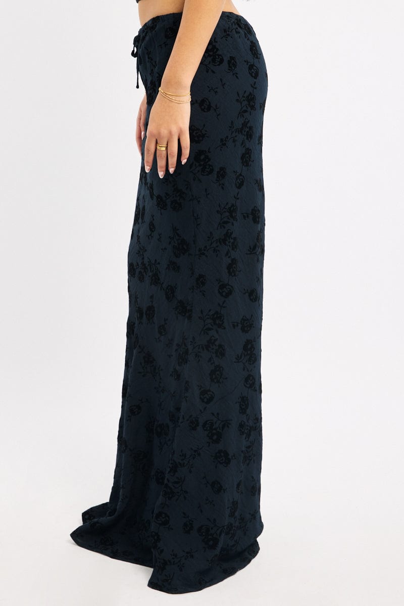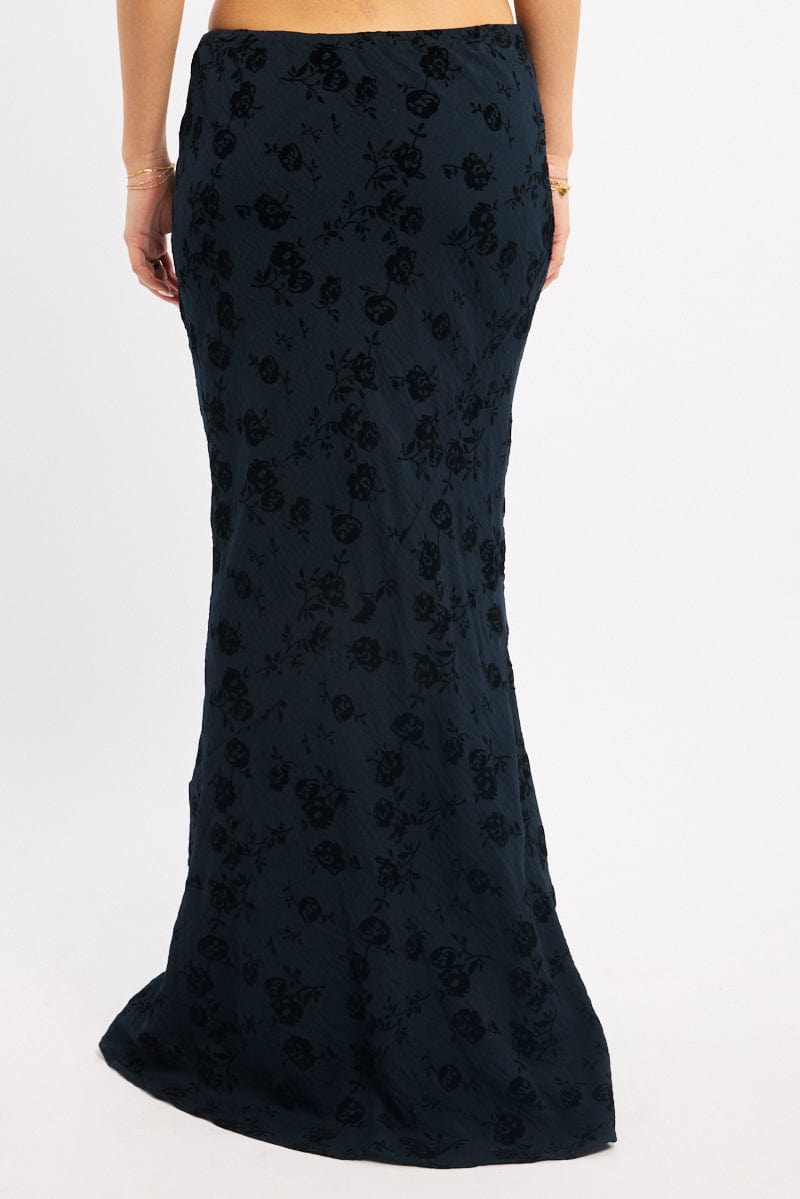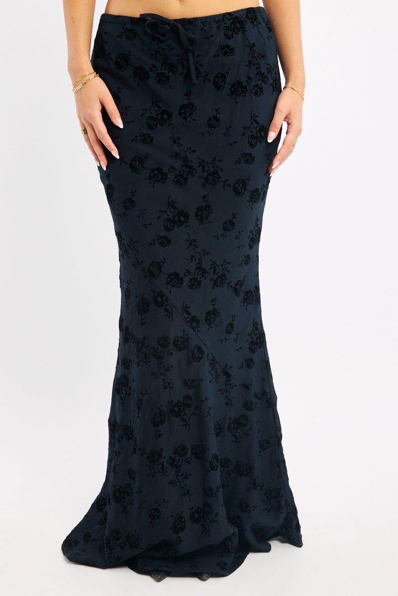 Black Floral Maxi Skirt High Waisted Panelled Detail Burnout