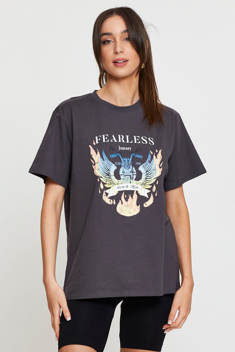 - Round Neckline, Short Sleeves, Graphic Print, 100% Cotton