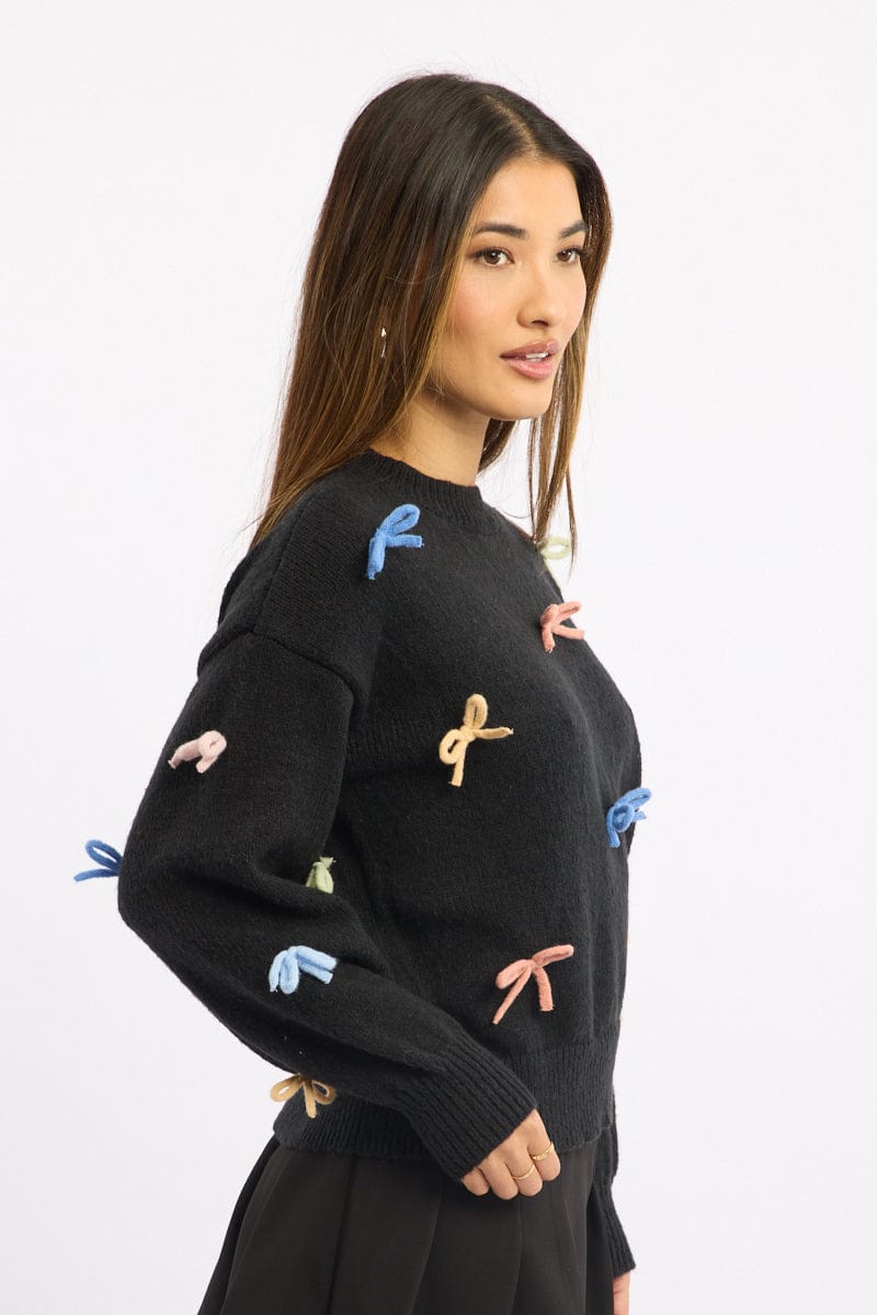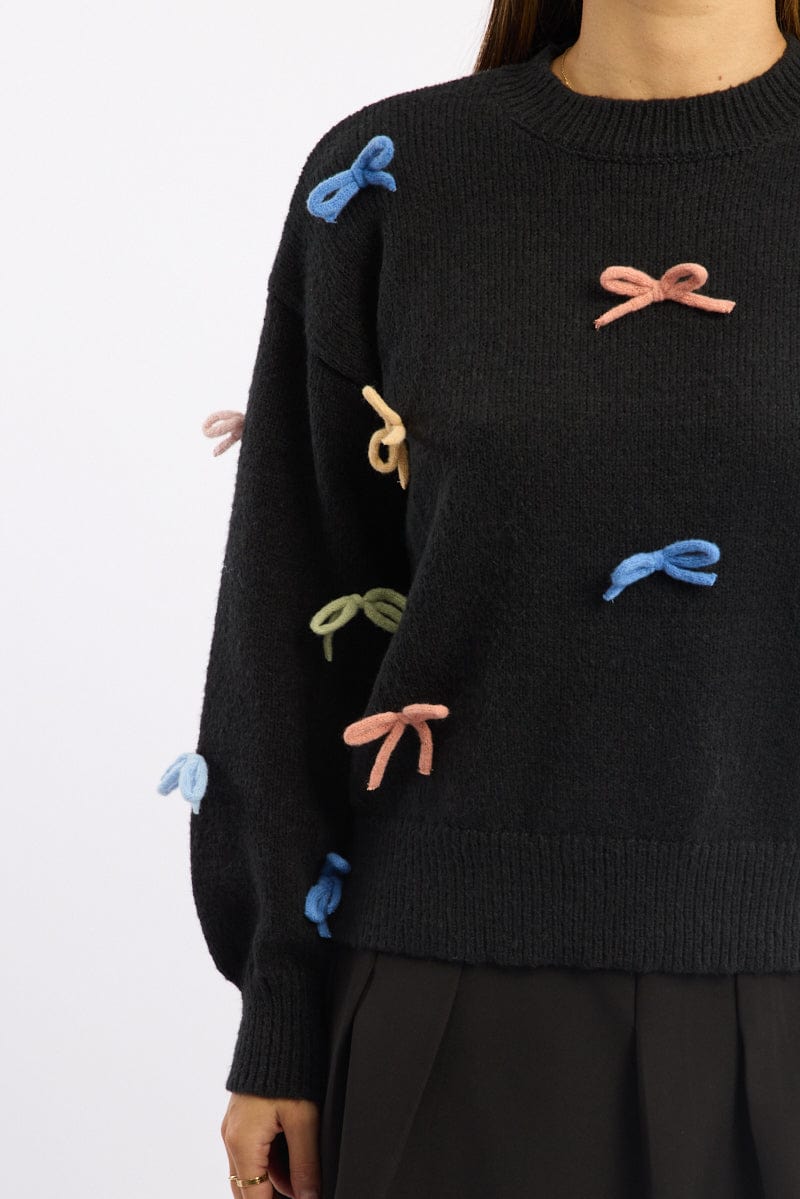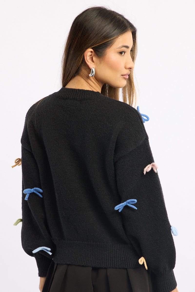 - Attached Bow Detail, Ribbed Hem and Cuffs