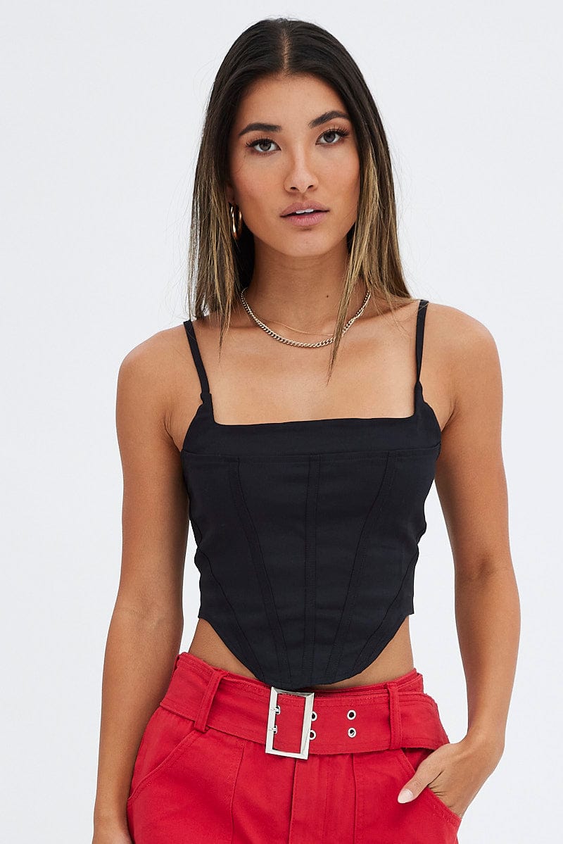 Black Lace Up Back Top Singlet