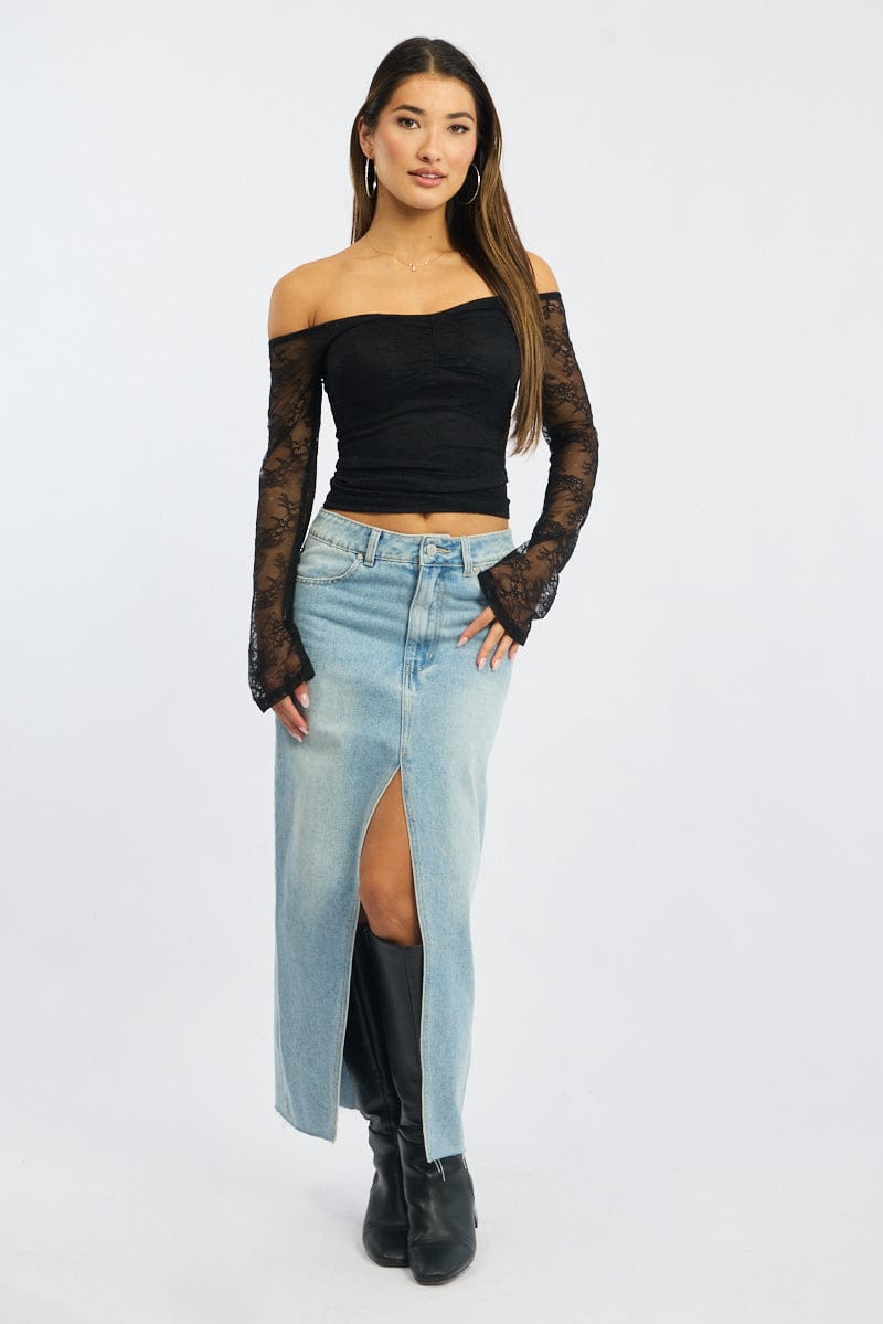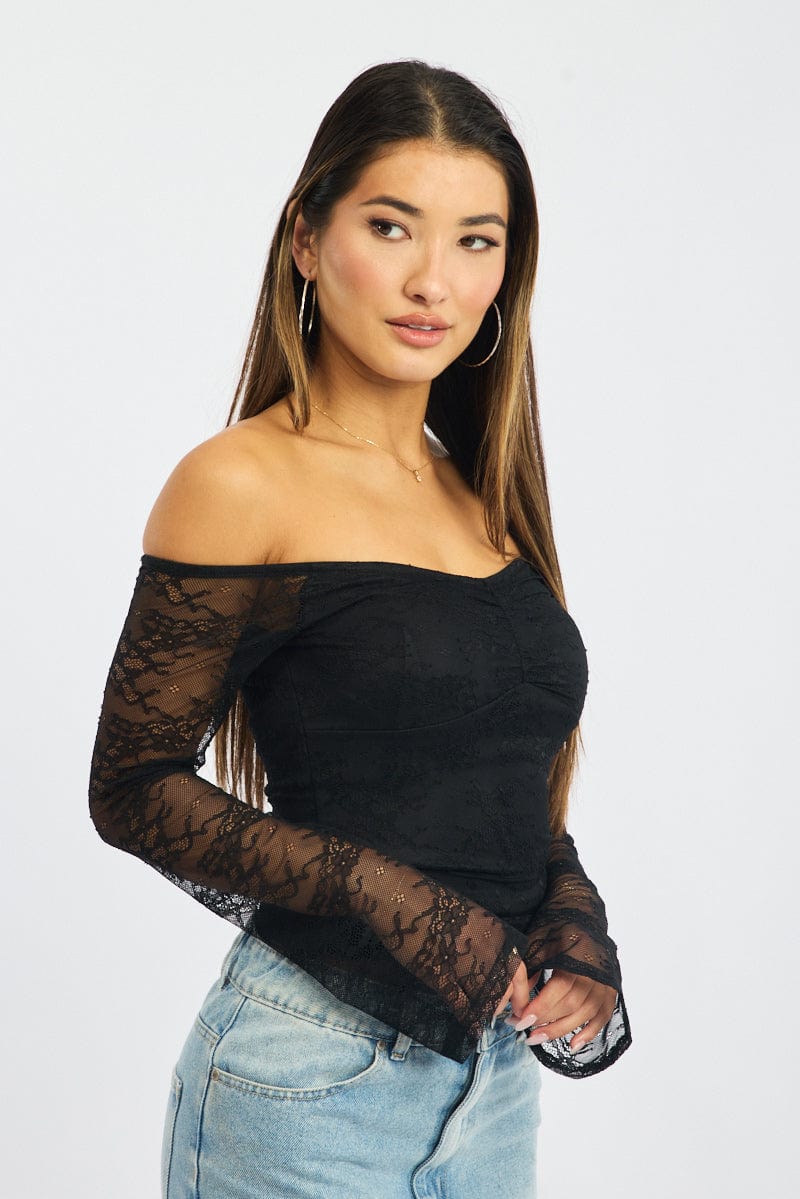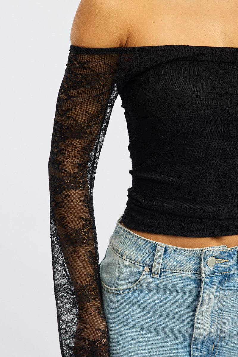 Black Off Shoulder Top Long Sleeve Lace