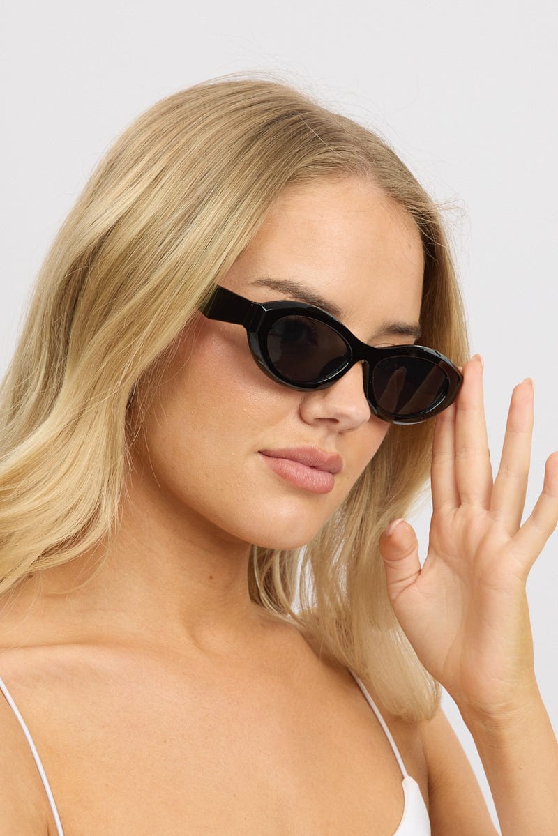 - Oval-Shaped, Black Coloured Frames, Black Tinted Lens