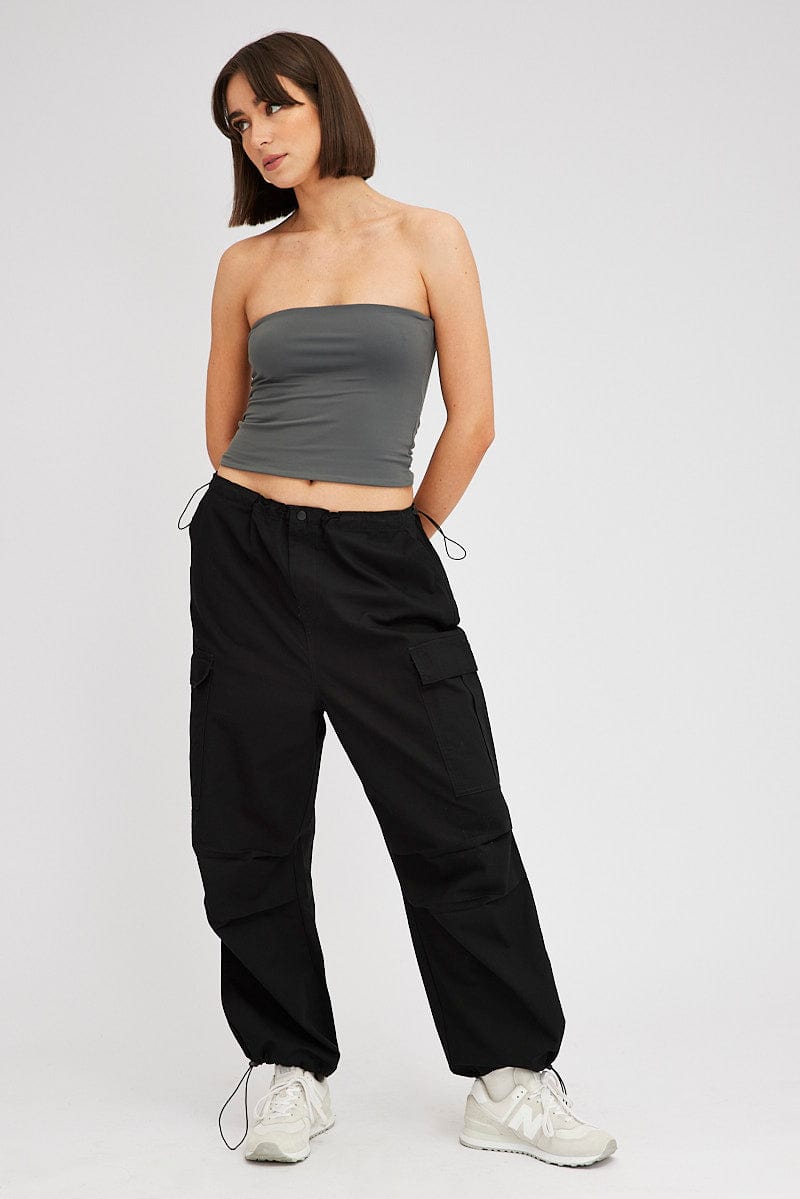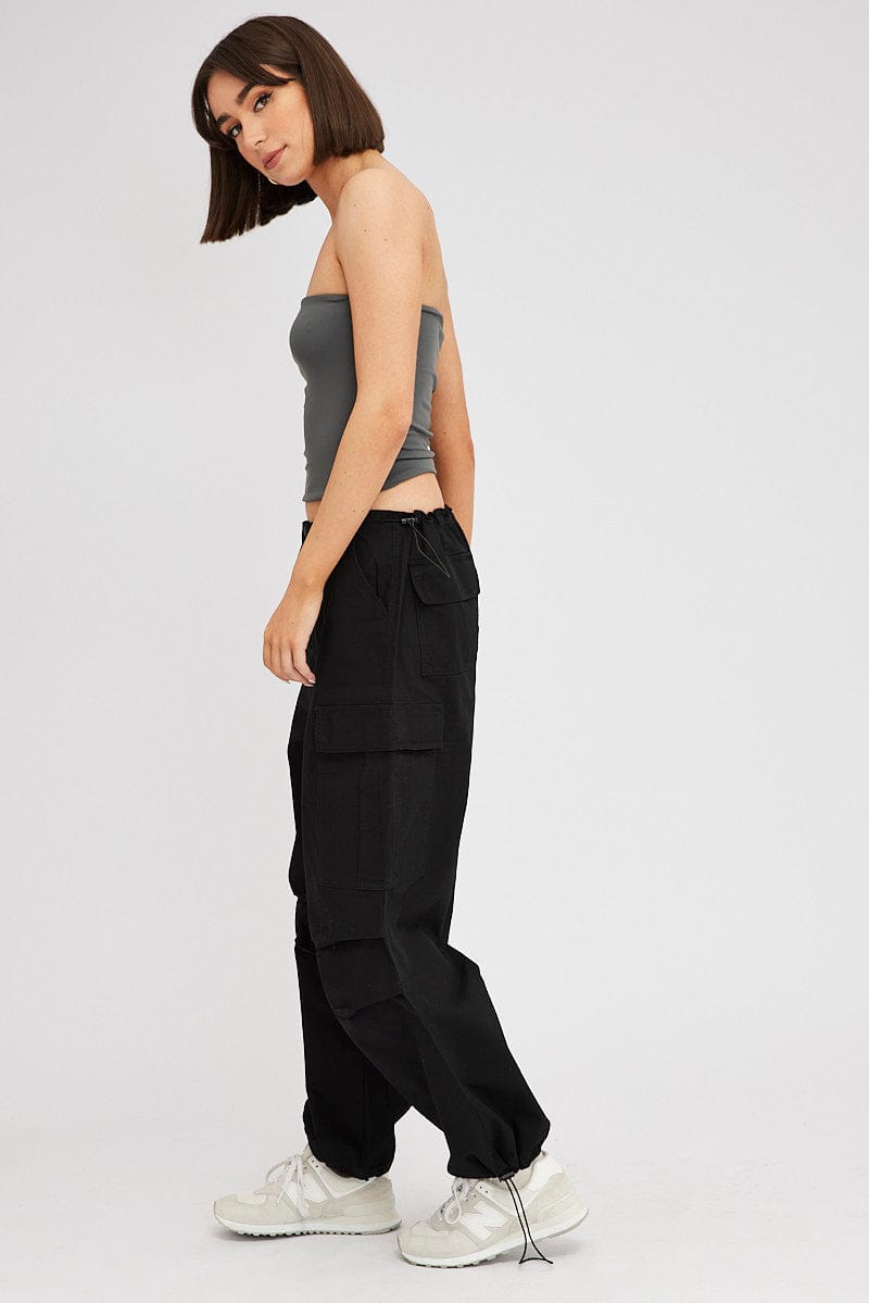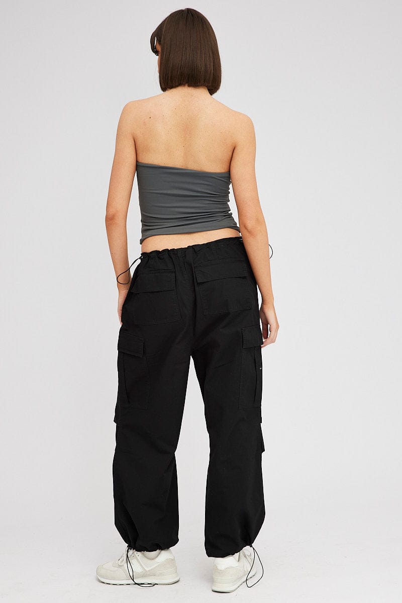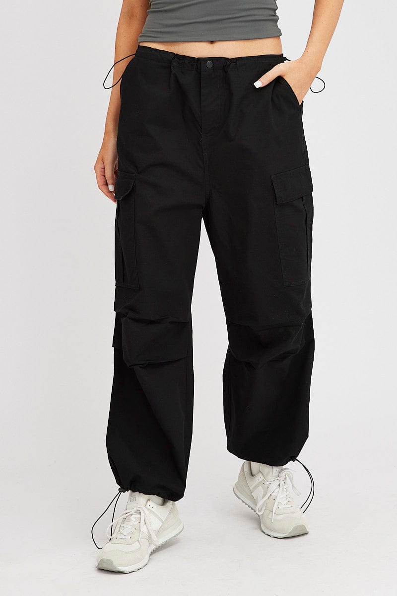 Black Parachute Pants Low Rise