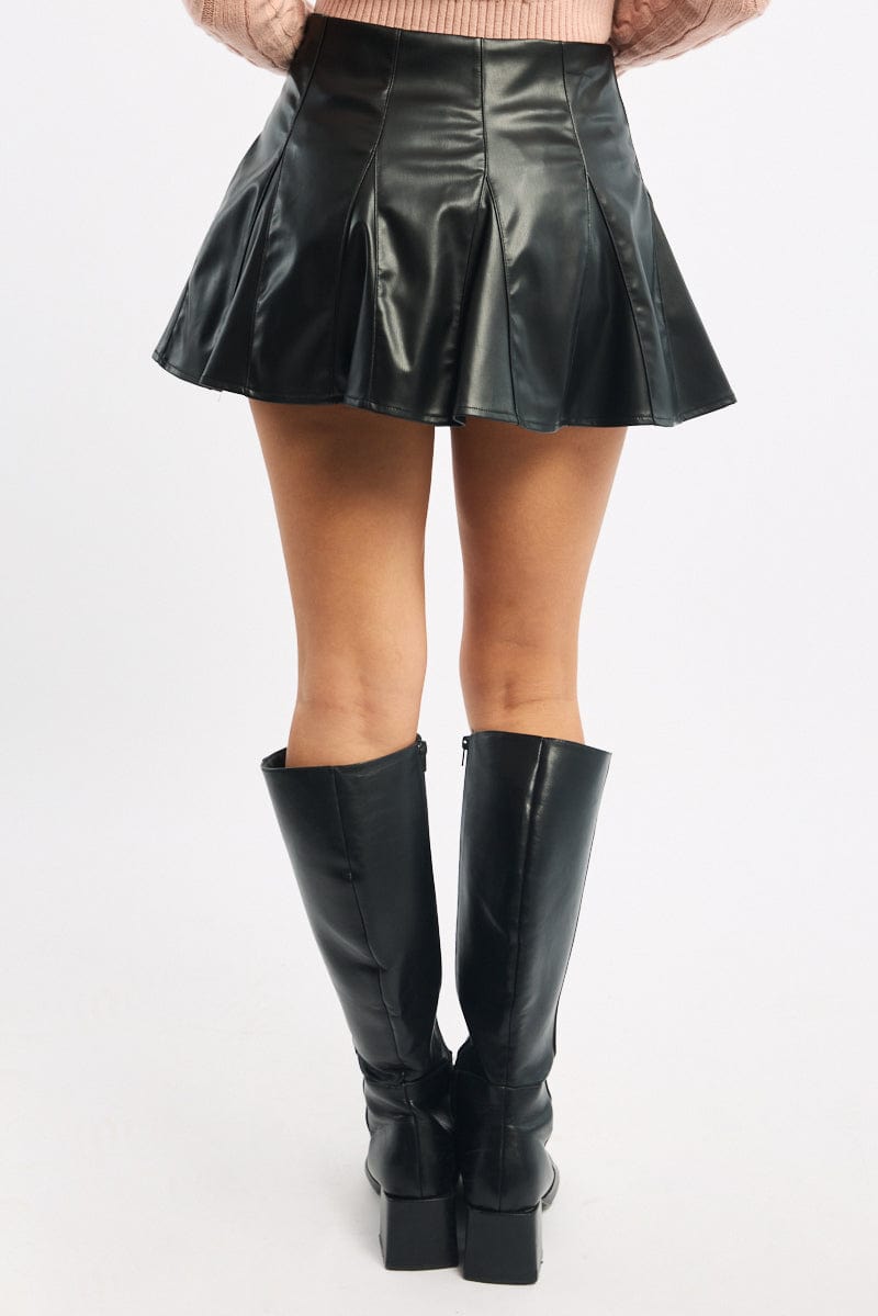 Black Pu Flare Skort Skirt High Waisted Panelled
