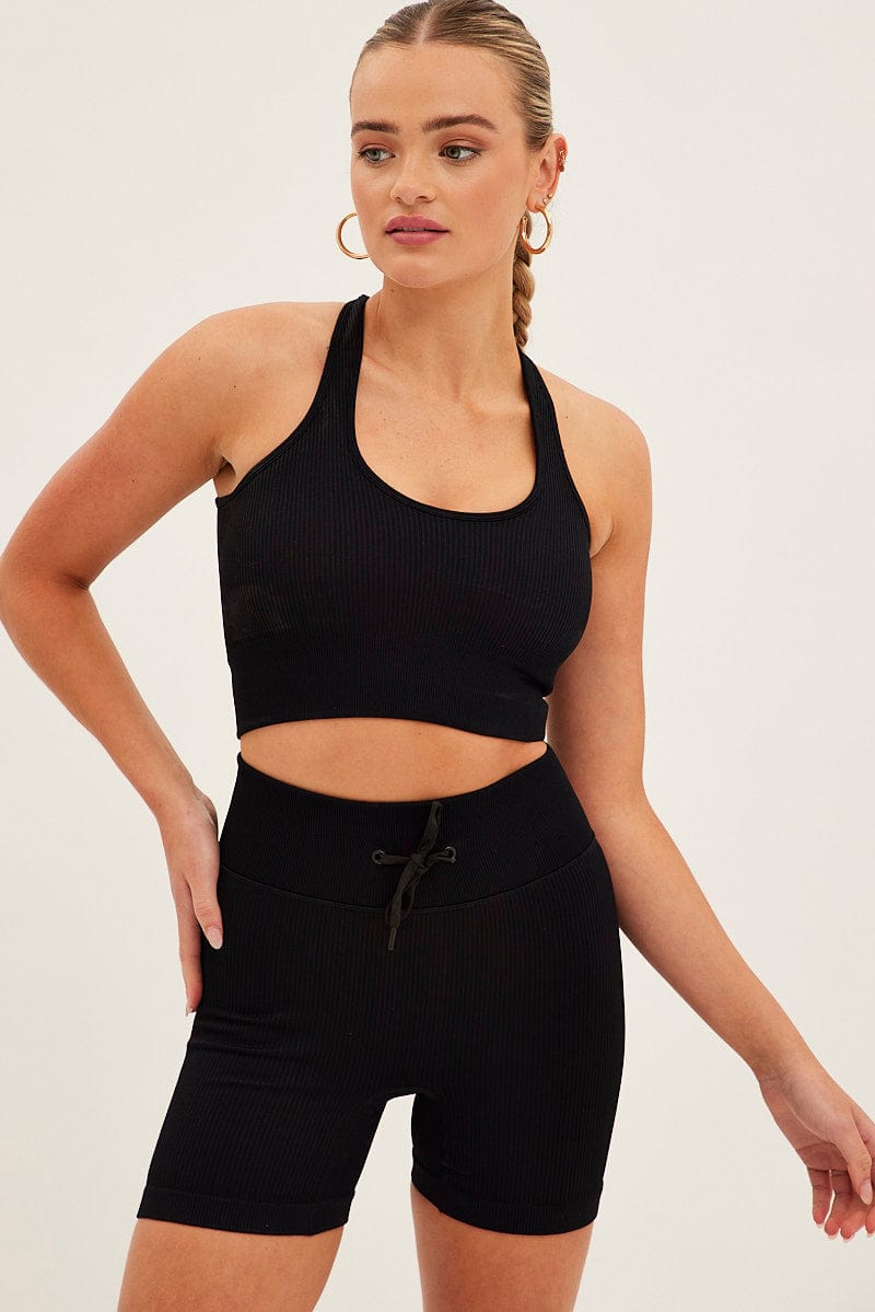 Black Seamless Halter Top And Bike Shorts Activewear Set