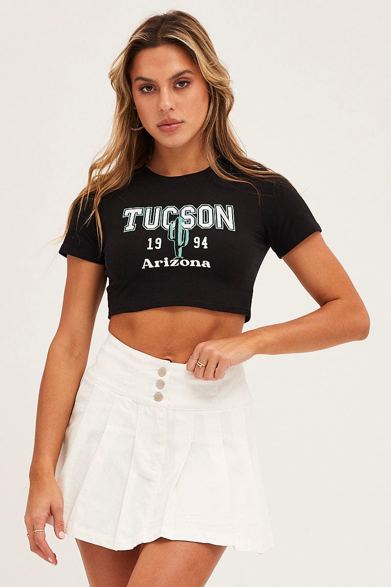 Black Short Sleeve Embroidered Graphic Baby Tee