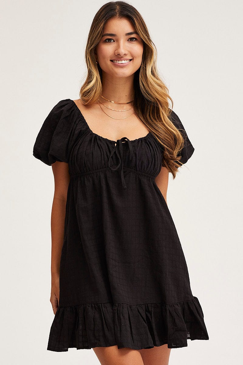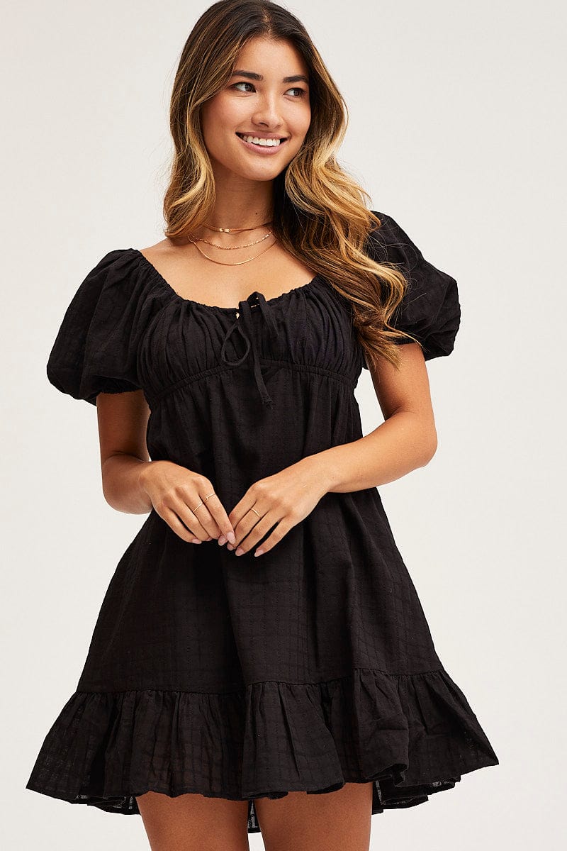 Black Skater Dress Short Sleeve Mini