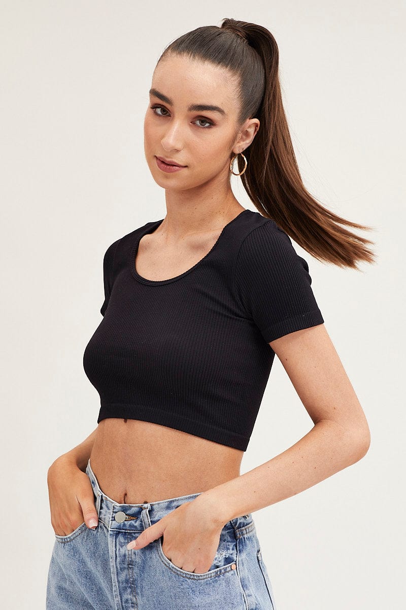 Black T-Shirt Short Sleeve Round Neck Seamless