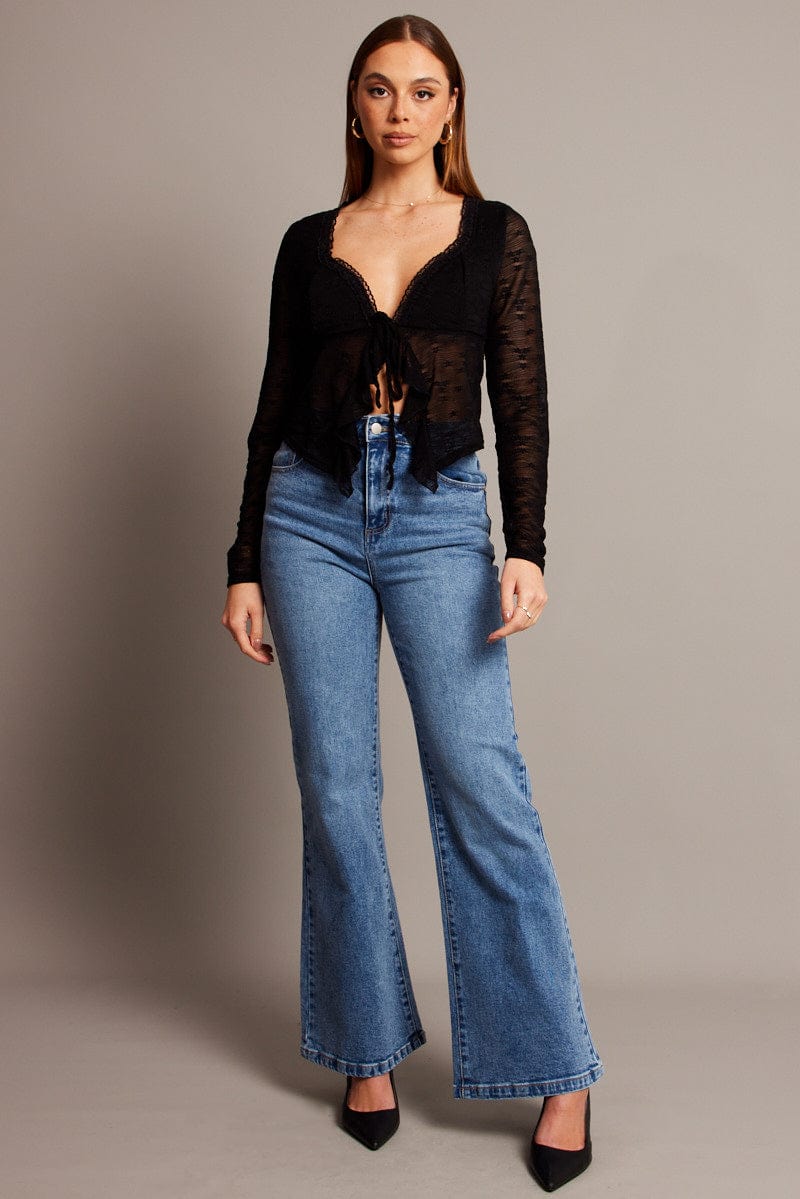 - Lace, Tie-Up Front, Ruffle Detail, Lined Bust