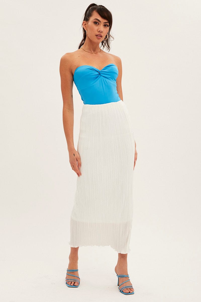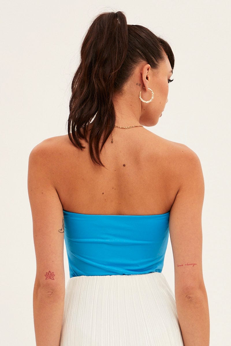 Blue Bodysuit Strapless Sweetheart Neckline Front Knot