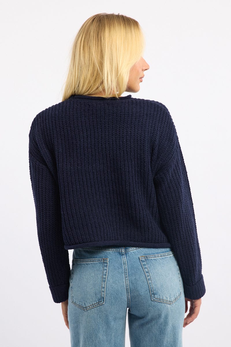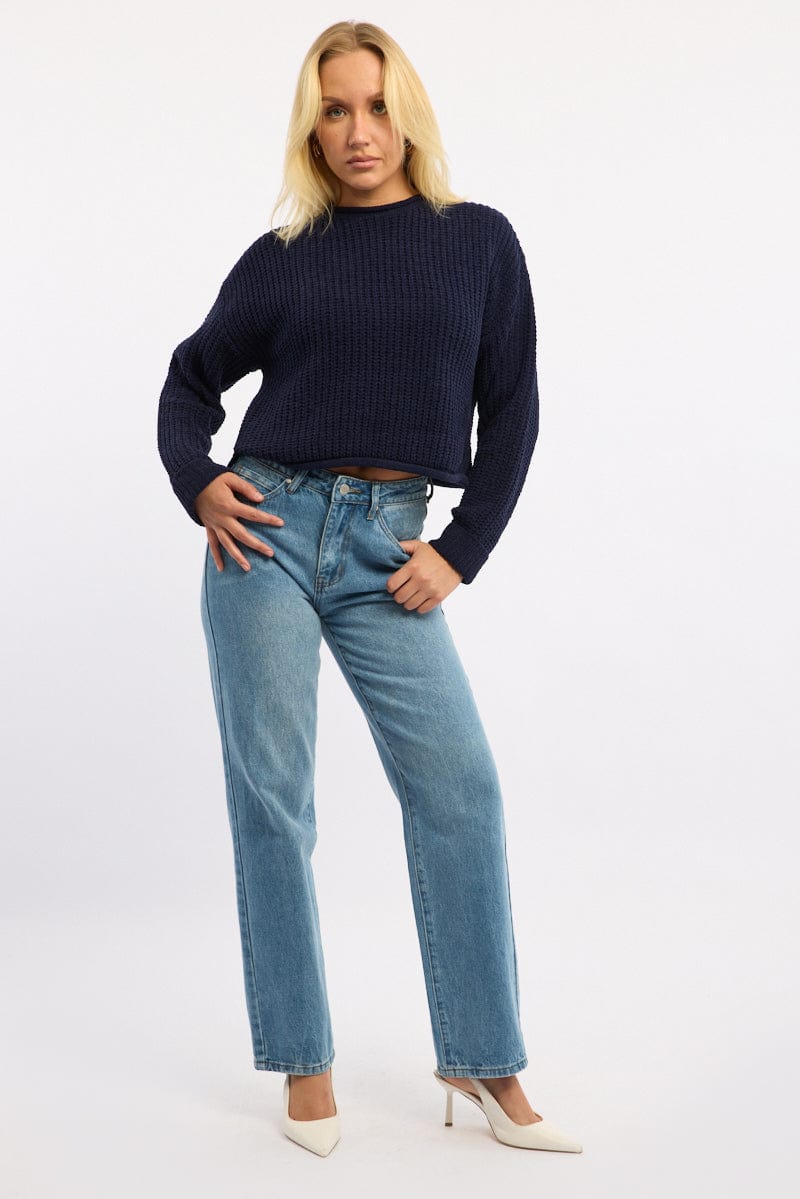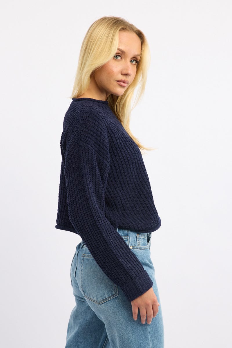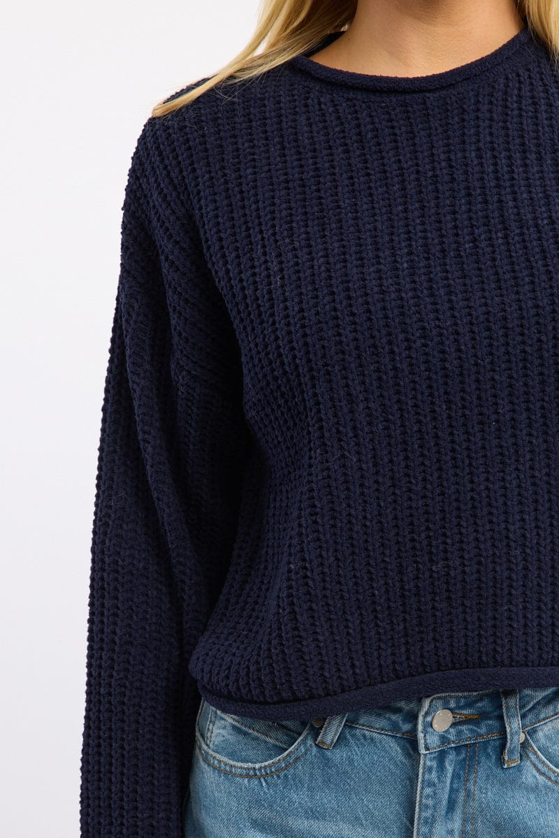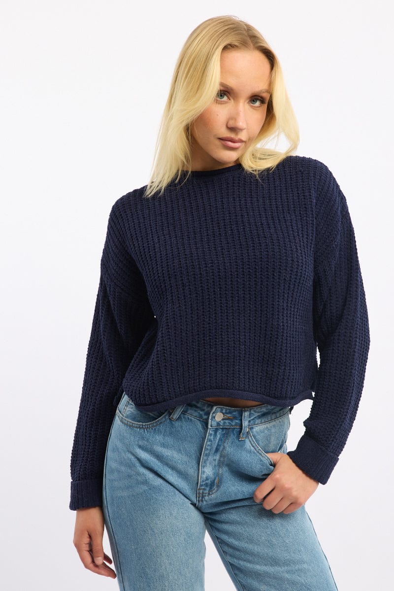 Blue Chenille Knit Jumper Long Sleeve
