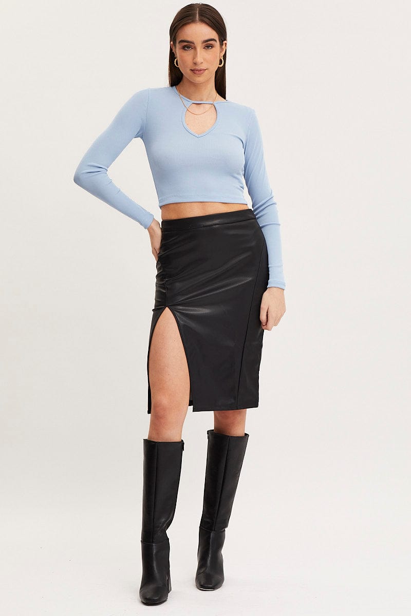 - Ribbed Material, Cut Out Detail, Long Sleeves, Cropped Length