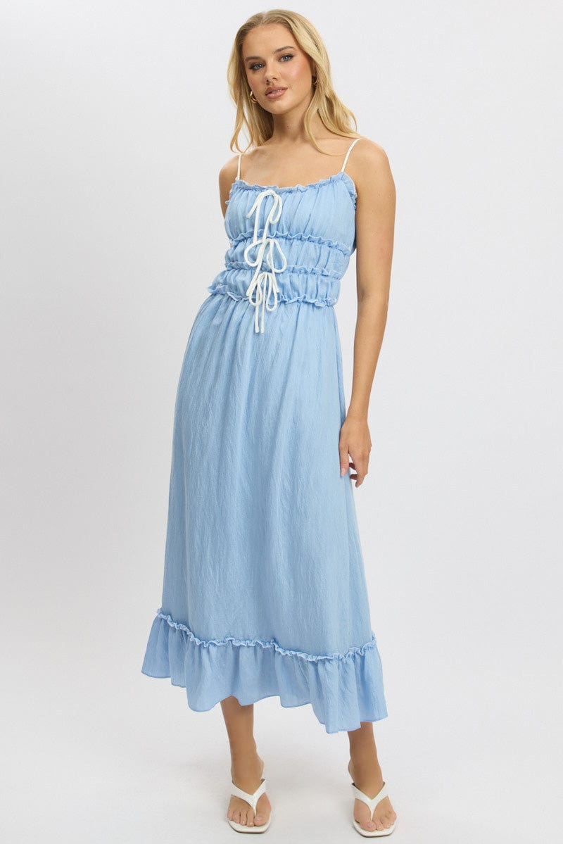 - Contrast Tie, Frill Hem and Trim, Tiered, Adjustable Straps